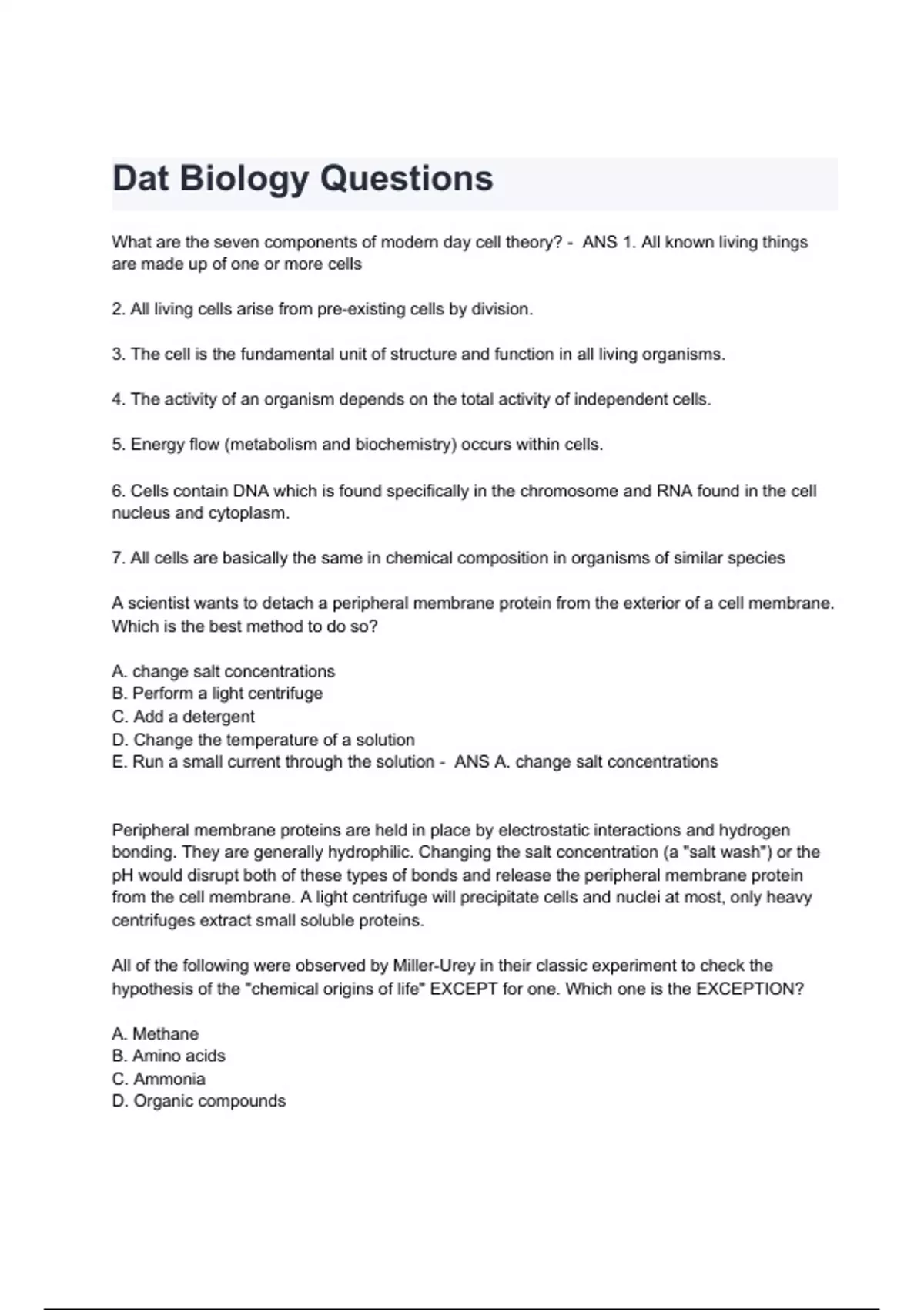 Dat Biology Questions and Answers 2024/2025( A+ GRADED 100% VERIFIED).