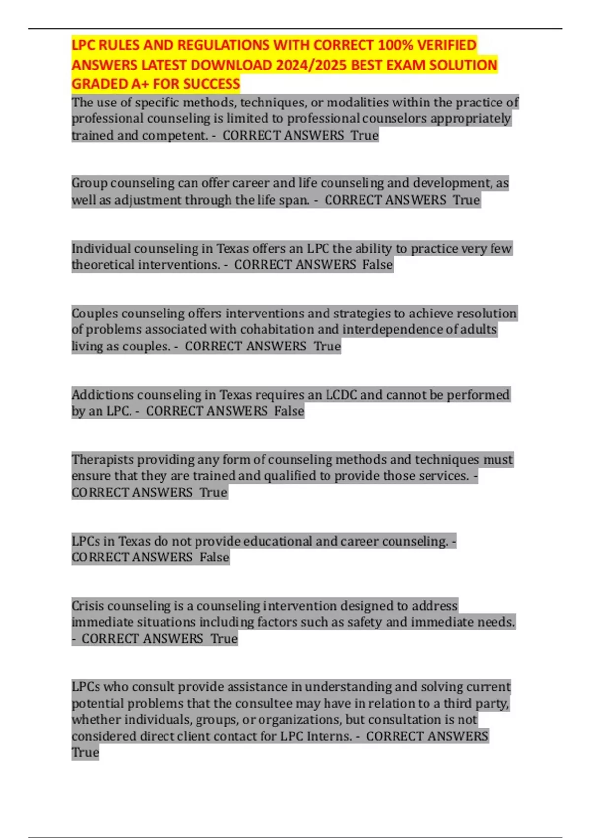 LPC RULES AND REGULATIONS WITH CORRECT 100% VERIFIED ANSWERS LATEST DOWNLOAD 2024/2025 BEST EXAM SOLUTION GRADED A+ FOR SUCCESS
