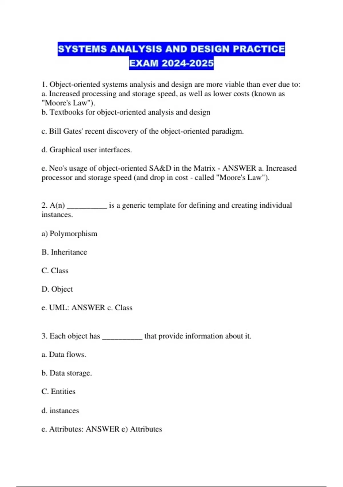 SYSTEMS ANALYSIS AND DESIGN PRACTICE EXAM ...