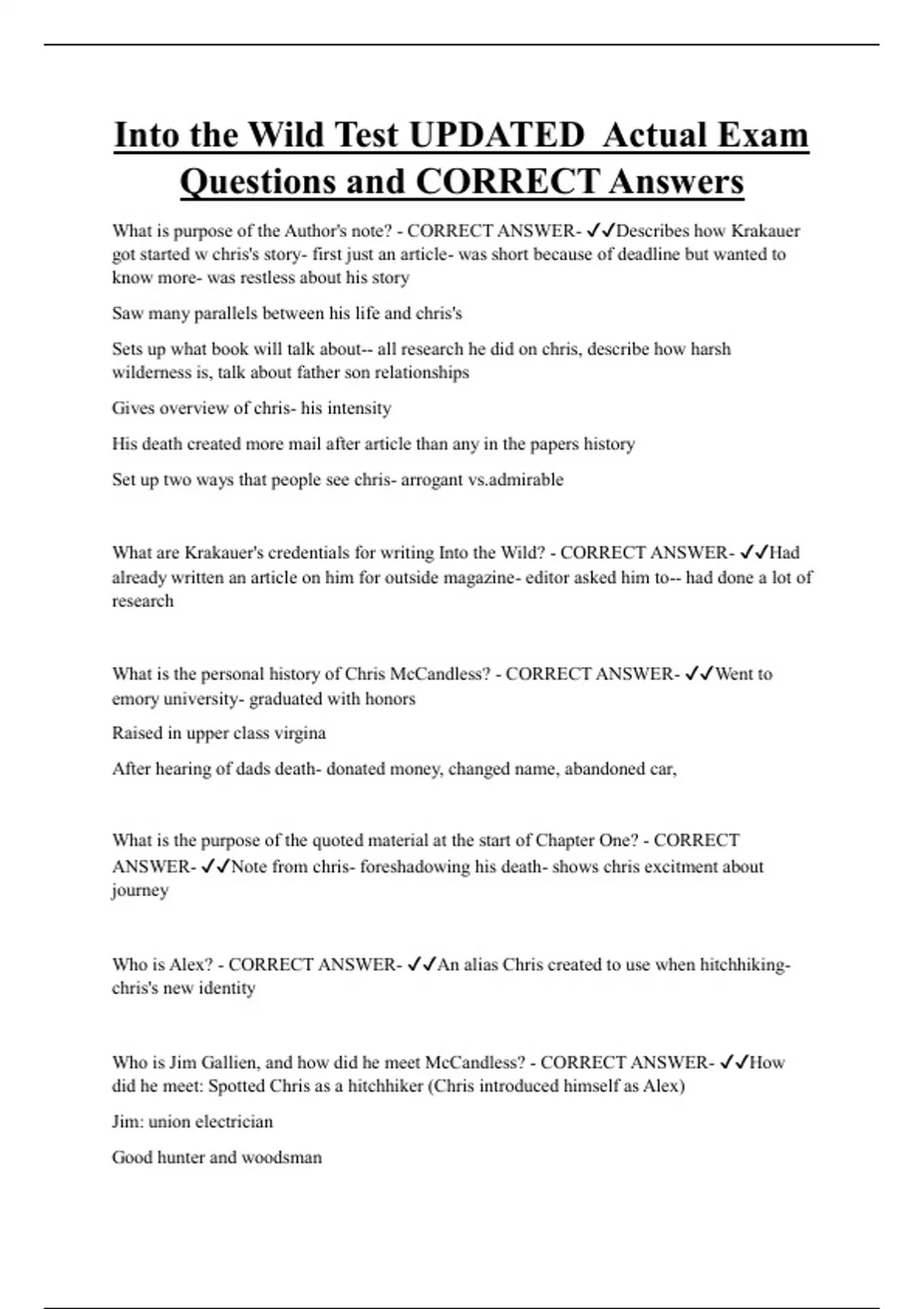 What are Krakauer's credentials for writing Into the Wild? - CORRECT ANSWER- ✔✔Had