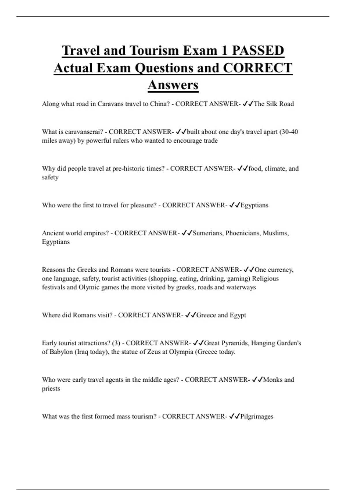 Who were the first to travel for pleasure? - CORRECT ANSWER- ✔✔Egyptians