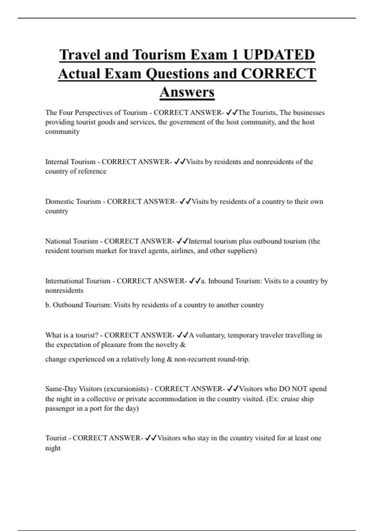 Visitors - CORRECT ANSWER- ✔✔All types of travelers engaged in tourism