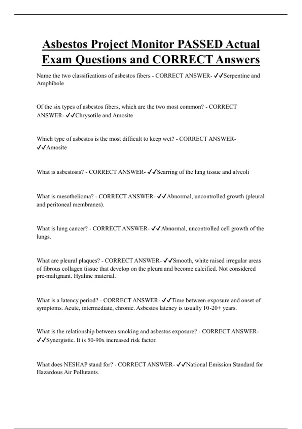 Asbestos Project Monitor PASSED Actual Exam Questions and CORRECT Answers
