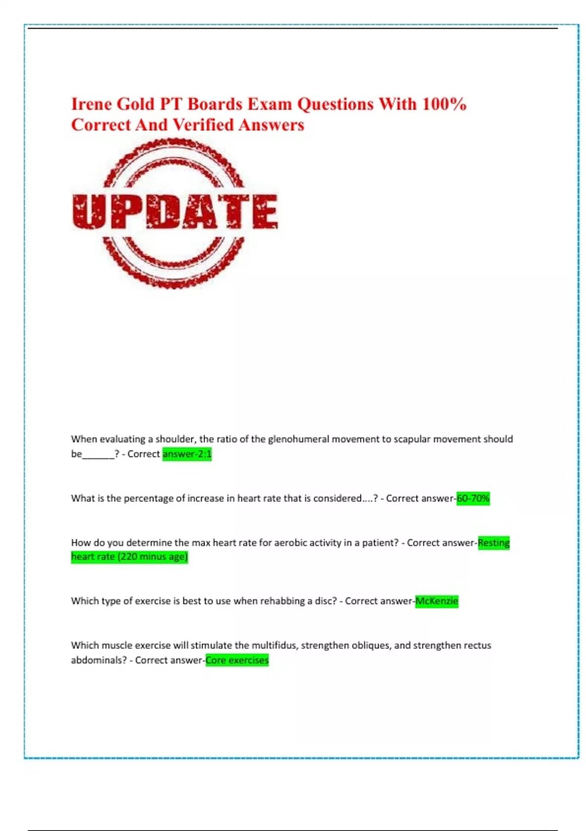 Follow up: what is the best exercise for rehab - Correct answer-1. Stretch abdominals