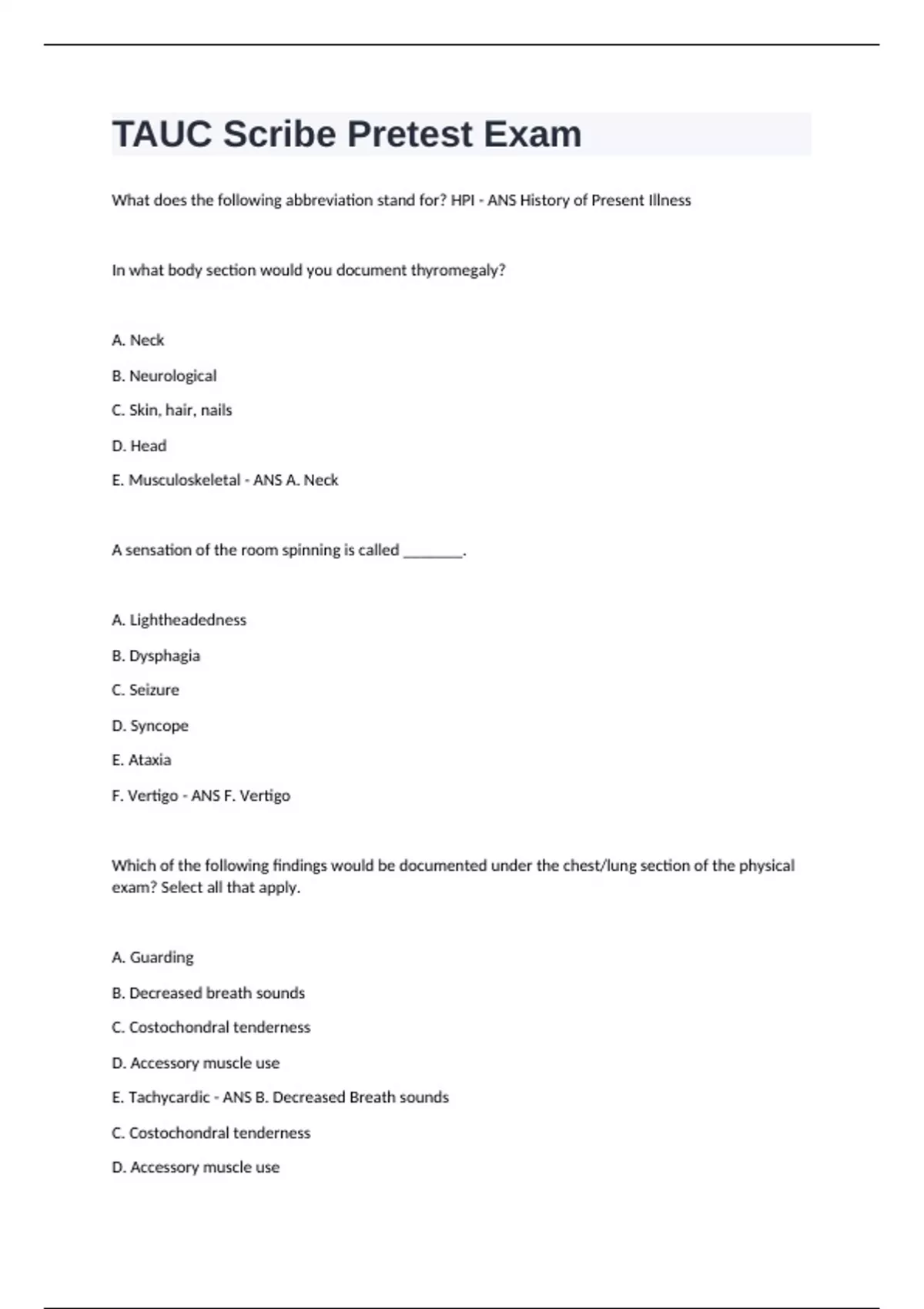 TAUC Scribe Pretest Exam - Questions and answers Graded A+ TAUC Scribe Pretest Exam - Questions and answers Graded A+ TAUC Scribe Pretest Exam - Questions and answers Graded A+