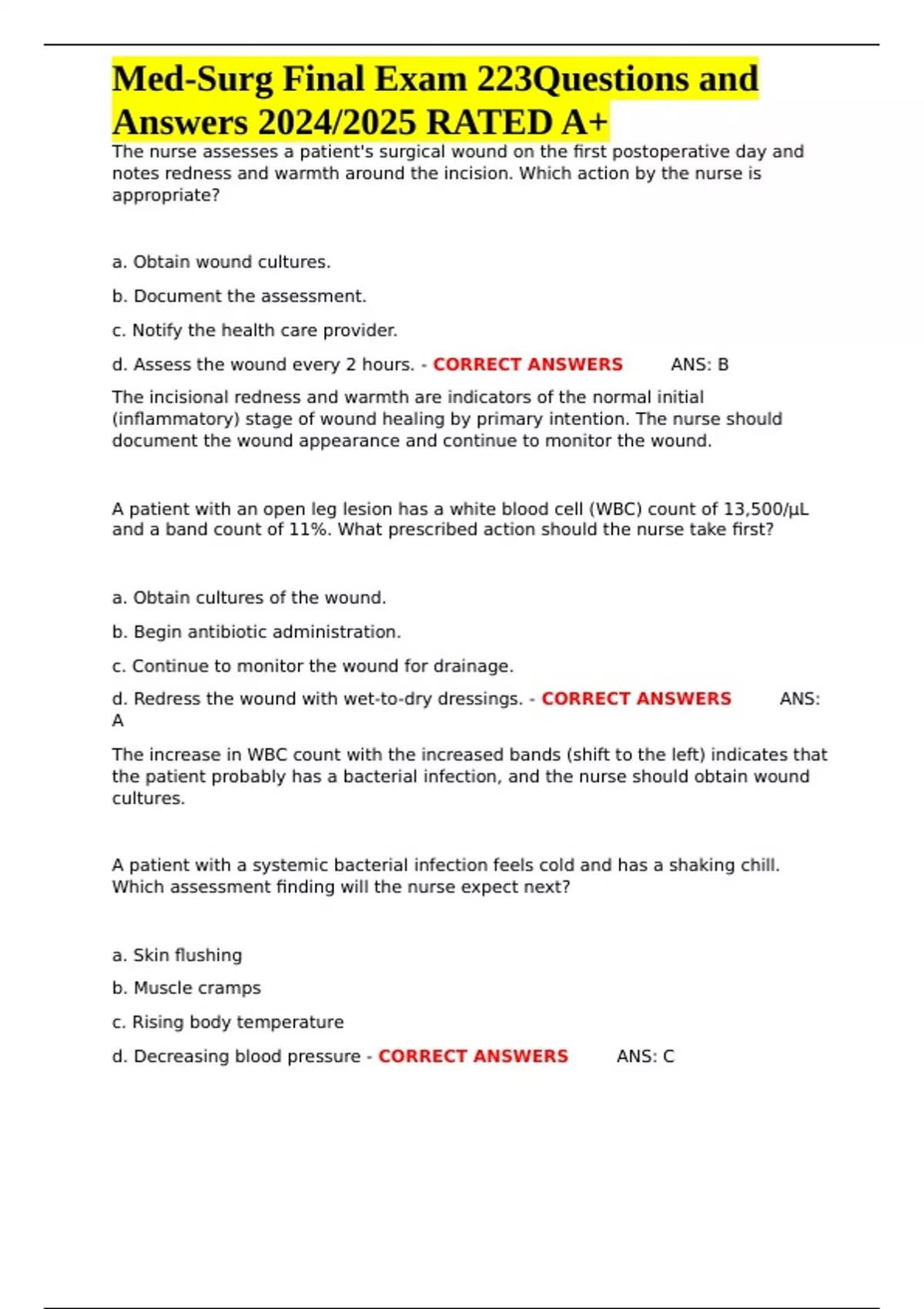 , Med-Surg Final Exam 223Questions and