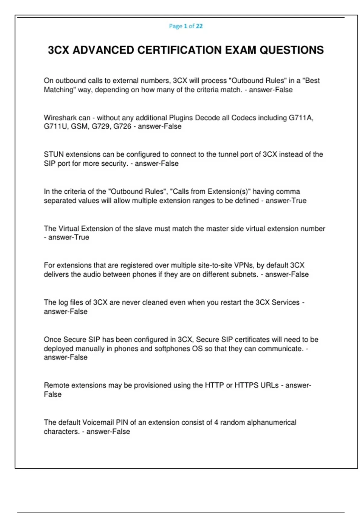 3CX ADVANCED CERTIFICATION EXAM QUESTIONS