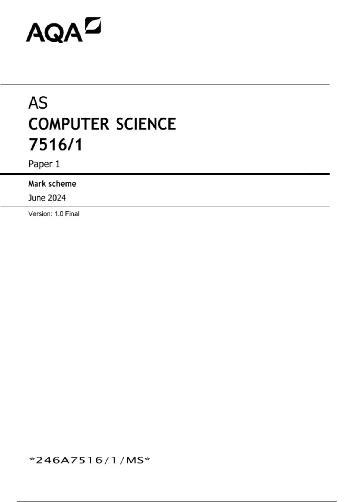 AQA AS COMPUTER SCIENCE Paper 1 JUNE 2024 MARK SCHEME