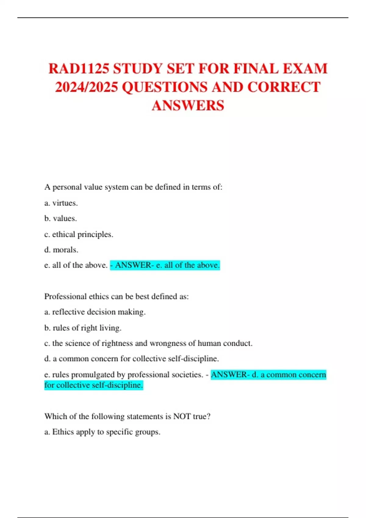 RAD1125 STUDY SET FOR FINAL EXAM 2024/2025 QUESTIONS AND CORRECT ANSWERSRAD1125 STUDY SET FOR FINAL EXAM 2024/2025 QUESTIONS AND CORRECT ANSWERSRAD1125 STUDY SET FOR FINAL EXAM 2024/2025 QUESTIONS AND CORRECT ANSWERSRAD1125 STUDY SET FOR FINAL EXAM 2024/2025 QUESTIONS AND CORRECT ANSWERSRAD1125 STUDY SET FOR FINAL EXAM 2024/2025 QUESTIONS AND CORRECT ANSWERSRAD1125 STUDY SET FOR FINAL EXAM 2024/2025 QUESTIONS AND CORRECT ANSWERS