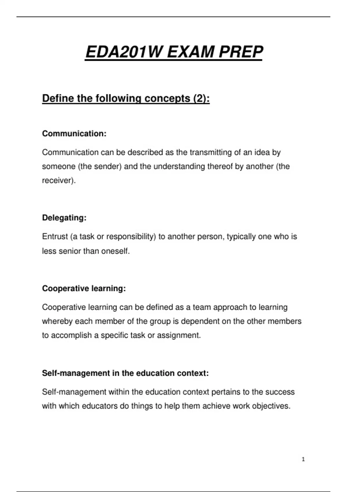 EDA201W EXAM PREP
