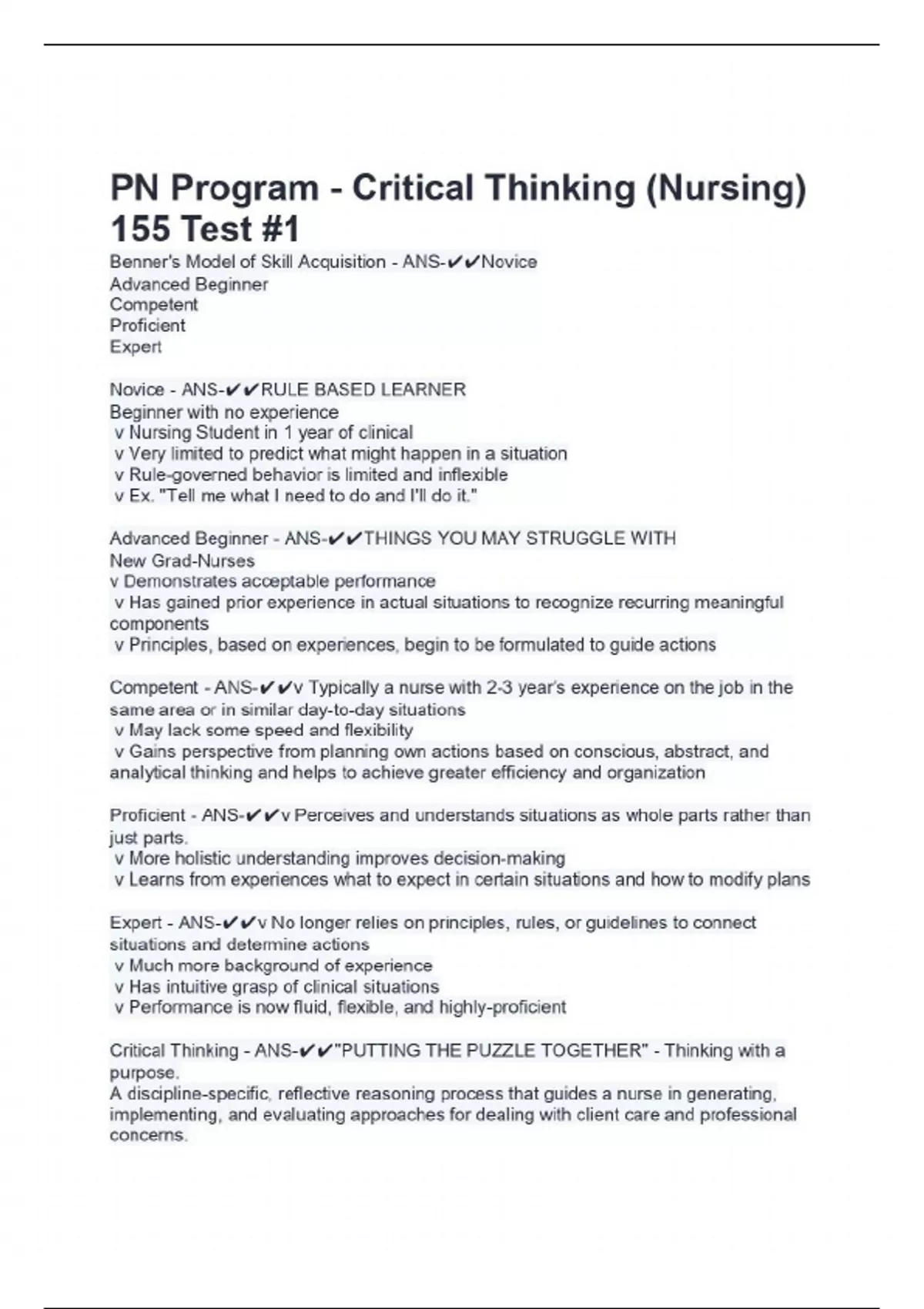 PN Program - Critical Thinking (Nursing) 155 Test #1