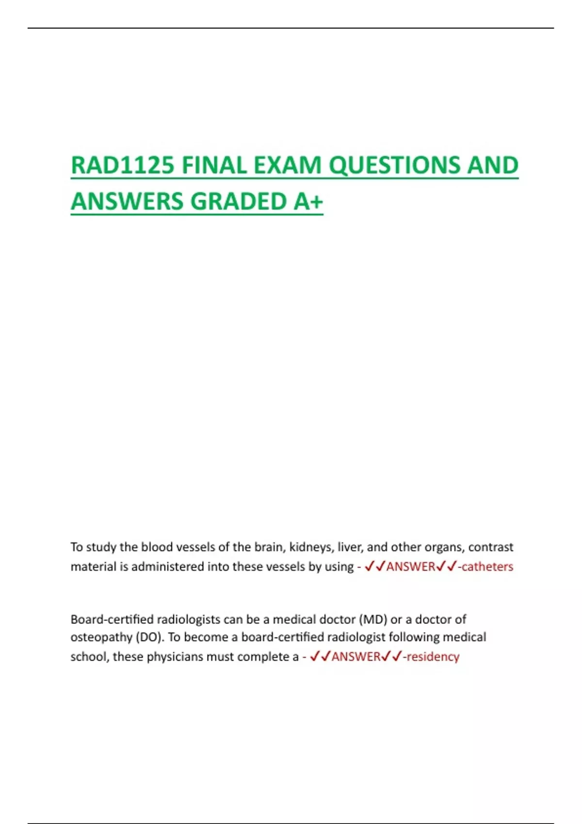 ✔✔ANSWER✔✔-Radiological Society of the America (RSNA).