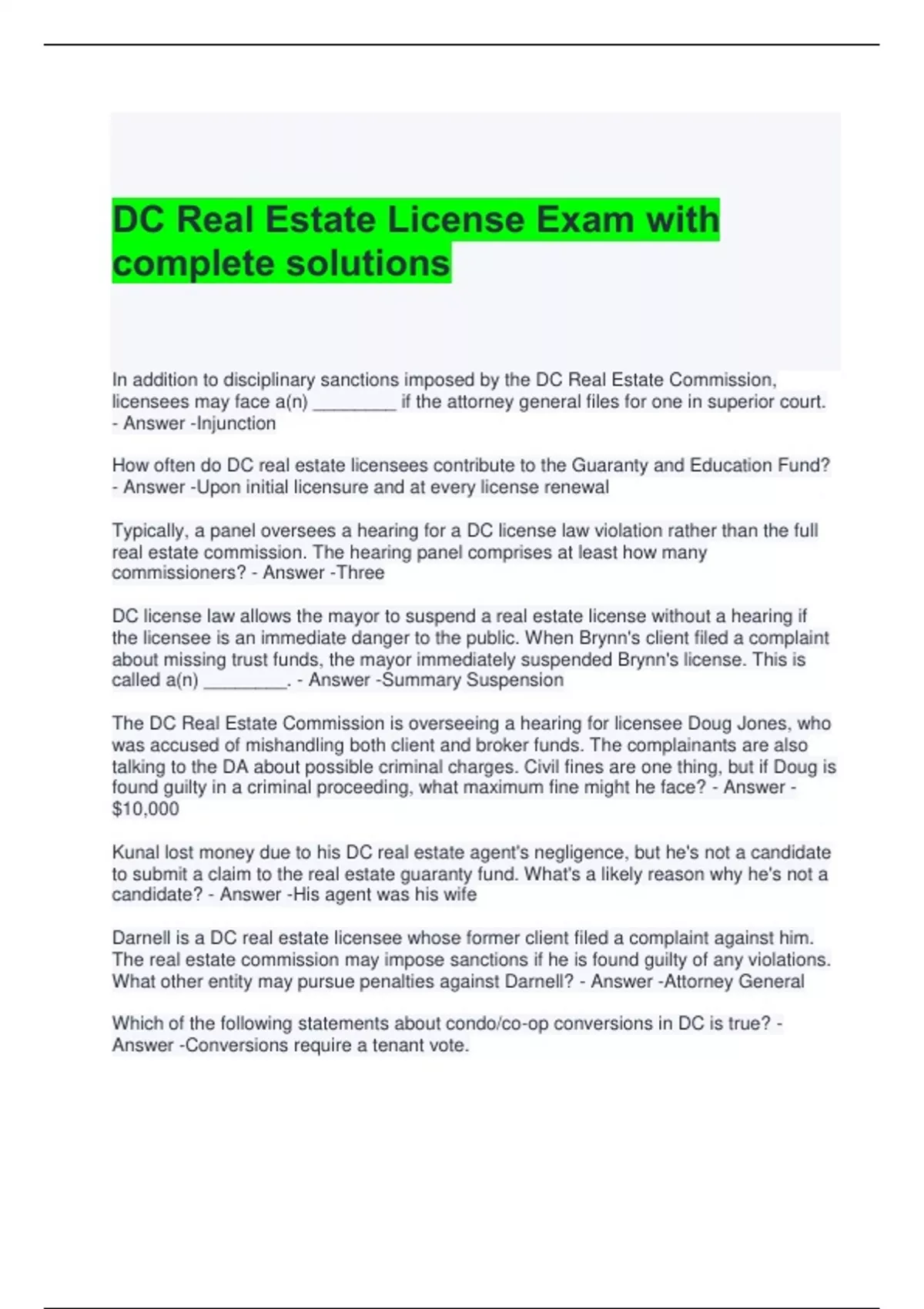 DC Real Estate License Exam with