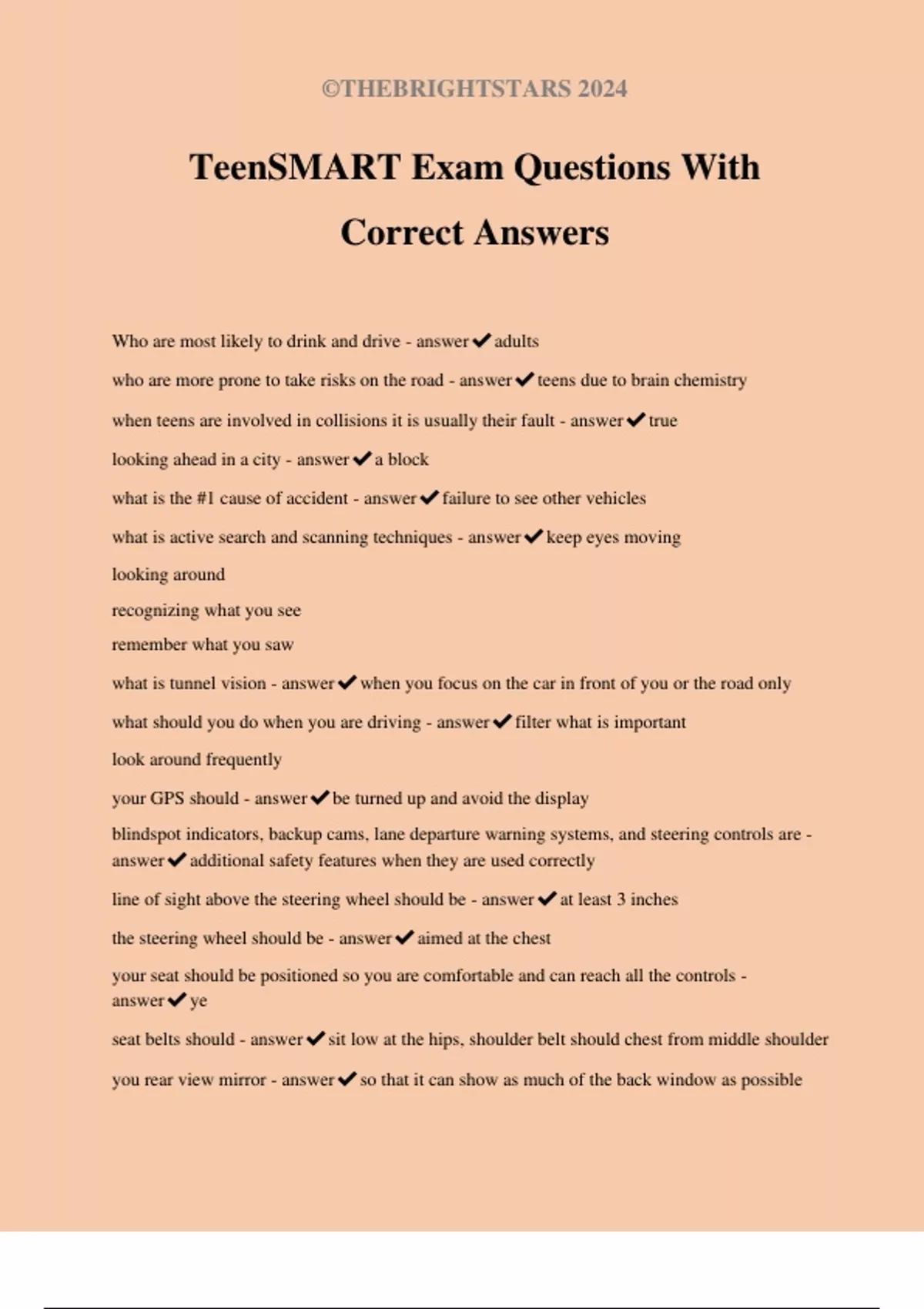 TeenSMART Exam Questions With