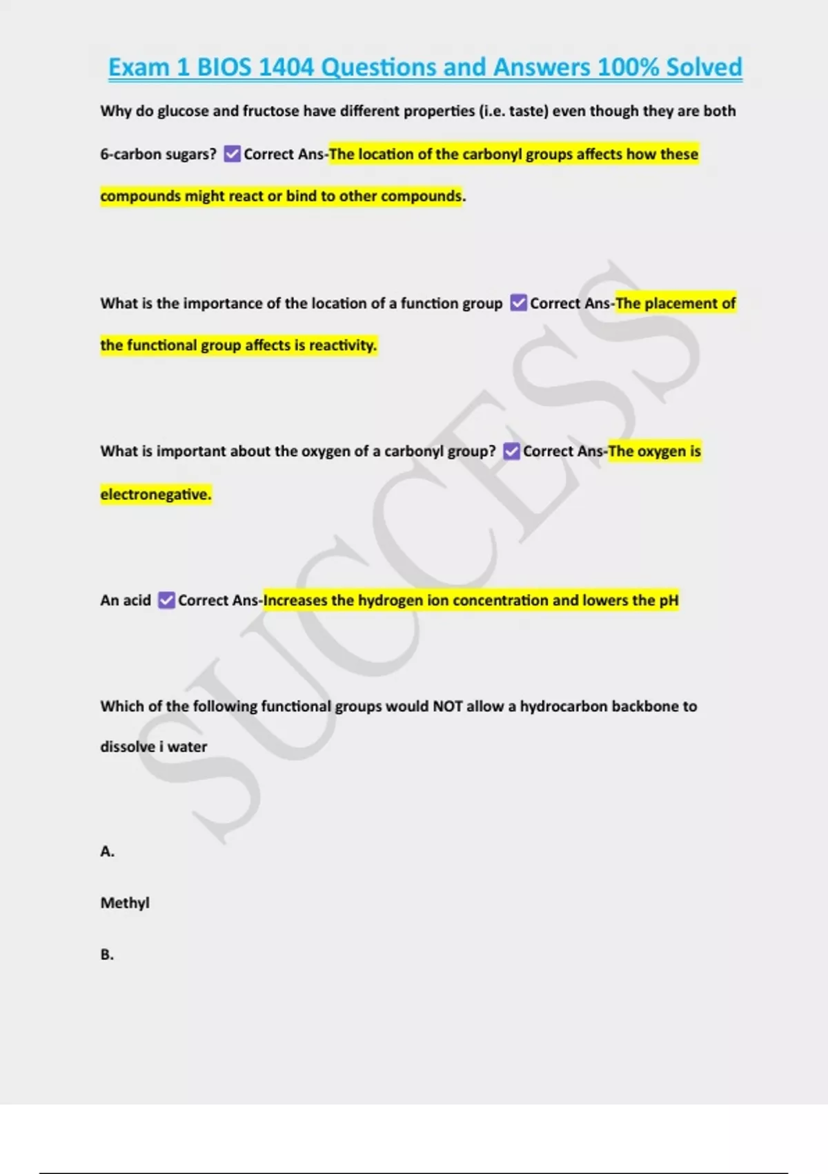 , Exam 1 BIOS 1404 Questions and Answers 100% Solved