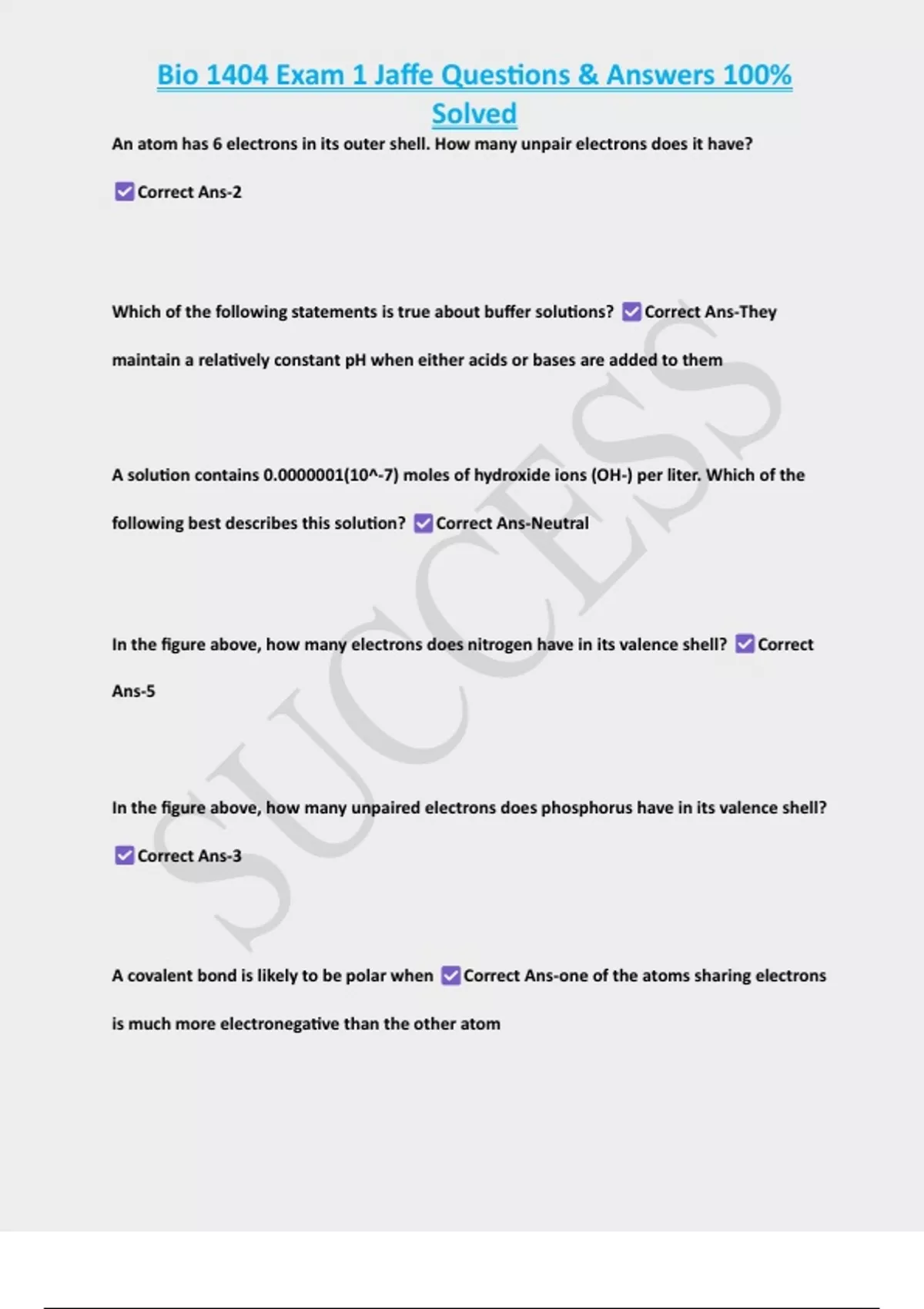 , Bio 1404 Exam 1 Jaffe Questions & Answers 100%