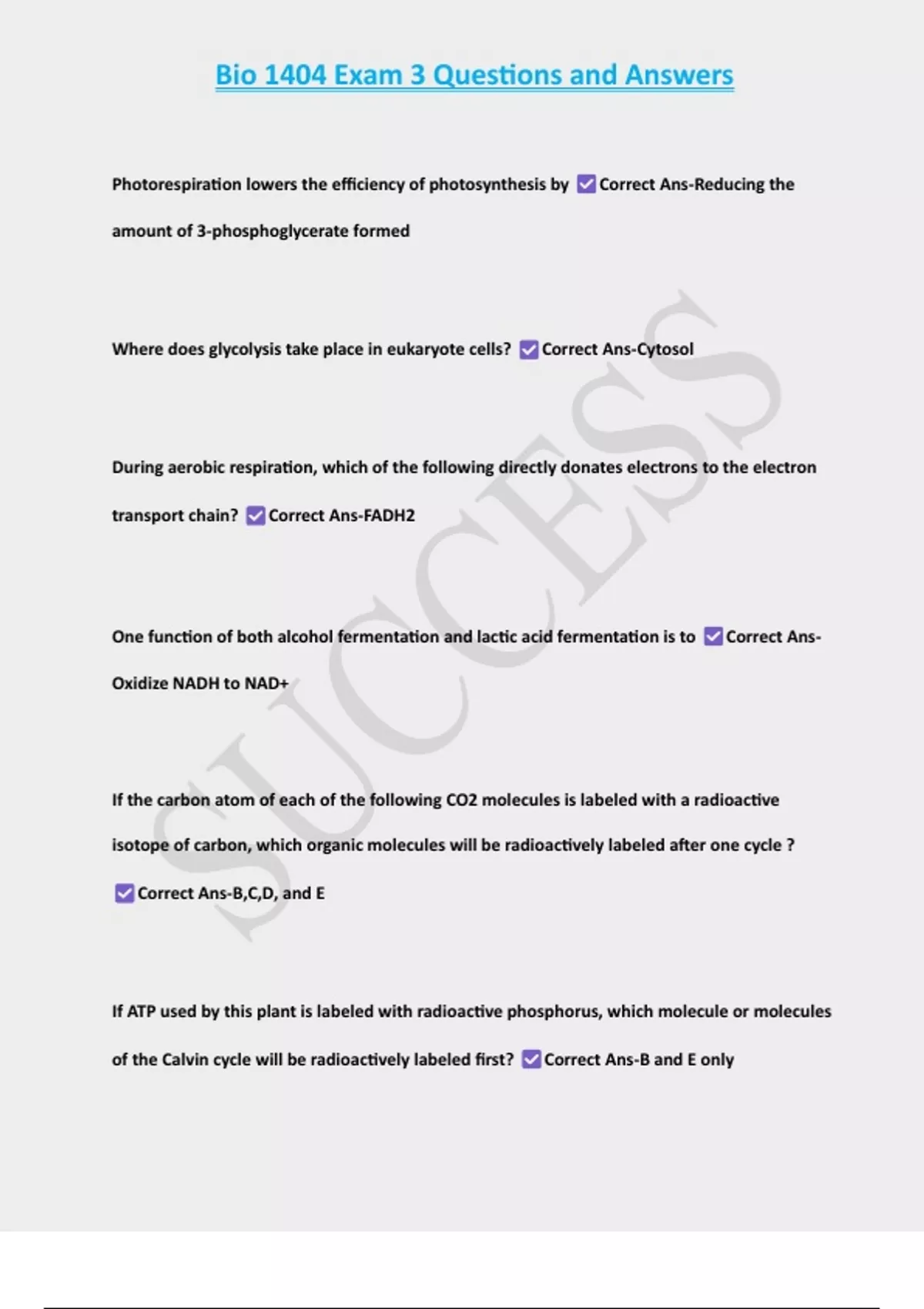 , Bio 1404 Exam 3 Questions and Answers