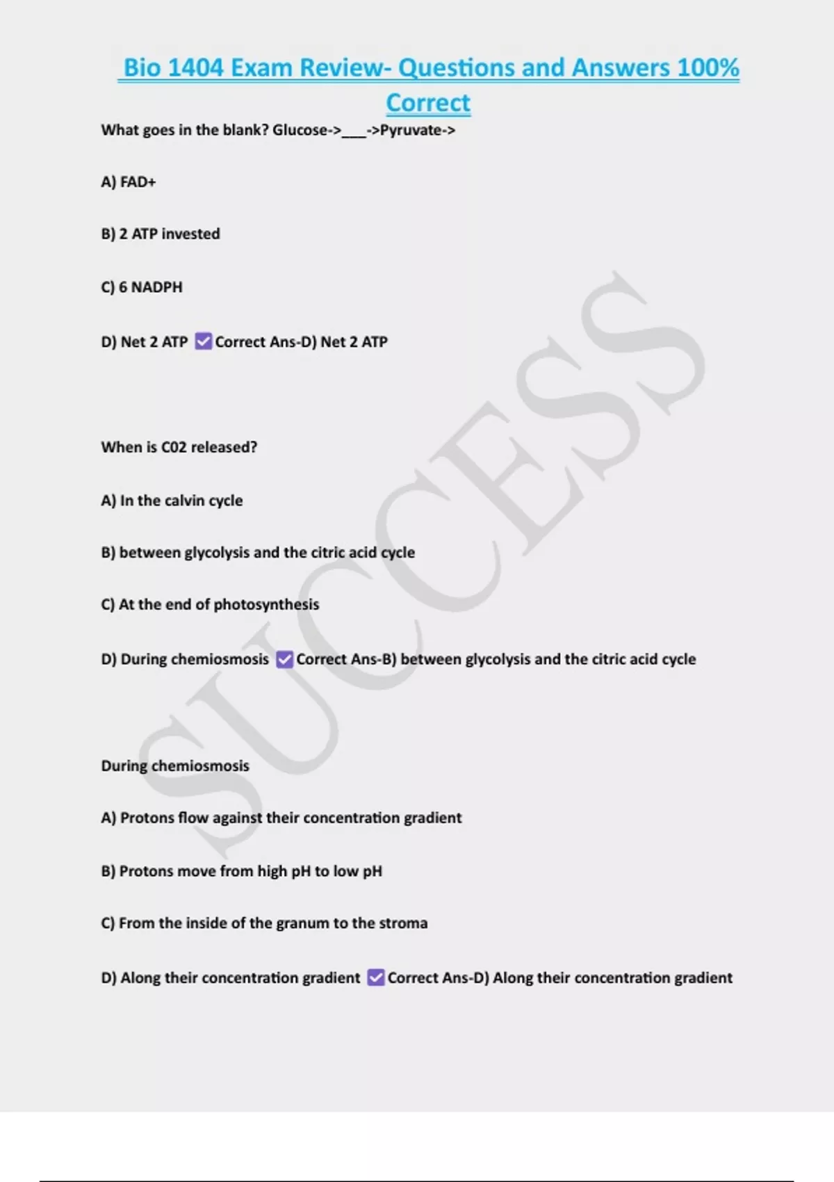 , Bio 1404 Exam Review- Questions and Answers 100%