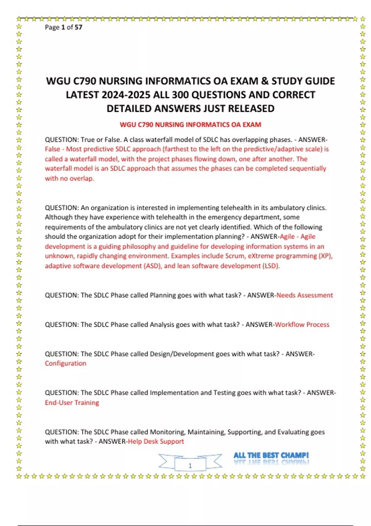 WGU C790 NURSING INFORMATICS OA EXAM & STUDY GUIDE