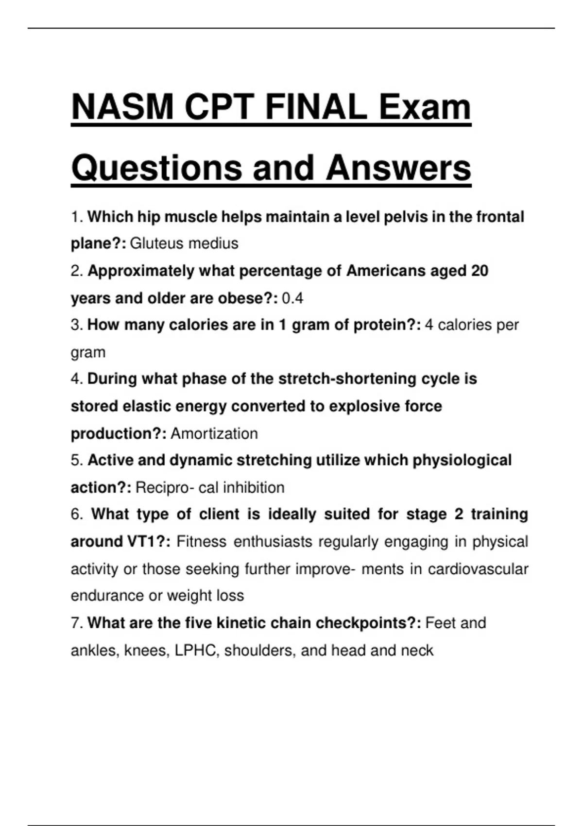 NASM CPT FINAL Exam Questions and Answers