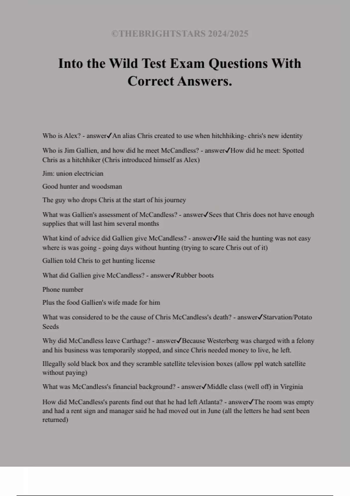 Into the Wild Test Exam Questions With