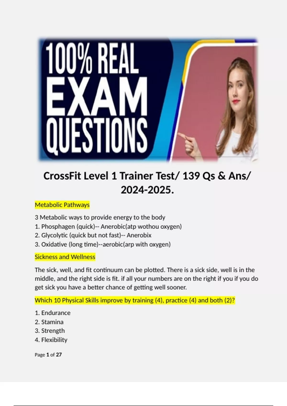 CrossFit Level 1 Trainer Test/ 139 Qs & Ans/ .
