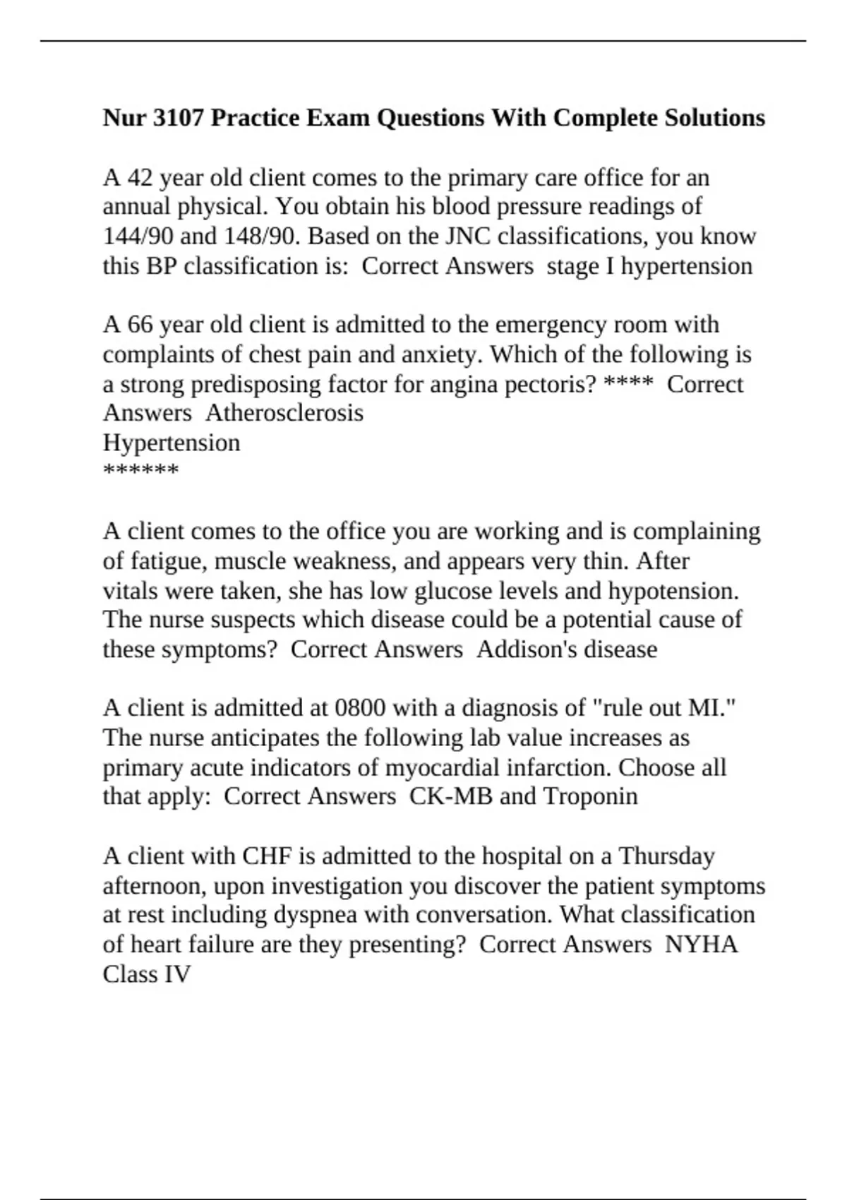 Nur 3107 Practice Exam Questions With Complete Solutions