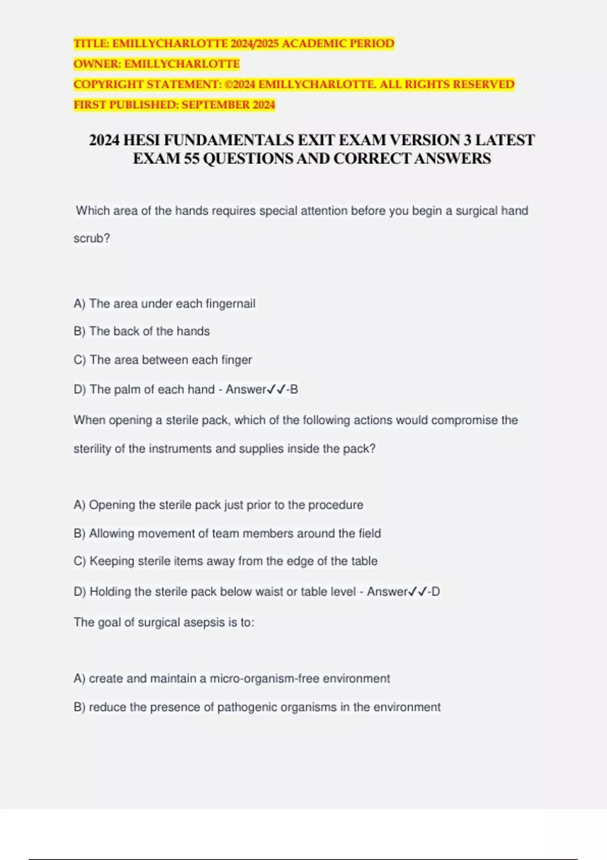 2024 HESI FUNDAMENTALS EXIT EXAM VERSION 3 LATEST