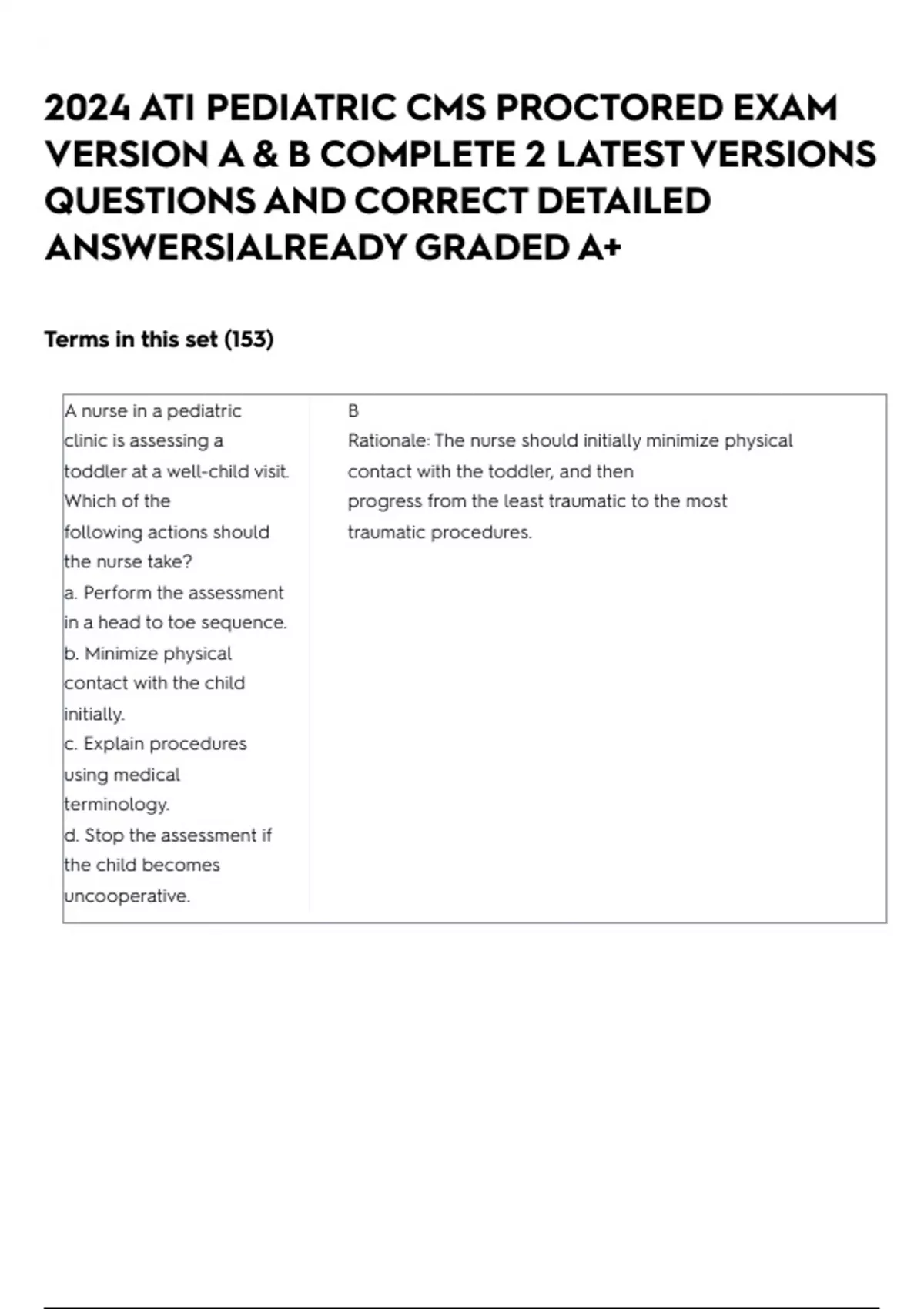 2024 ATI PEDIATRIC CMS PROCTORED EXAM VERSION A & B COMPLETE 2 LATEST VERSIONS QUESTIONS AND CORRECT DETAILED ANSWERS|ALREADY GRADED A+