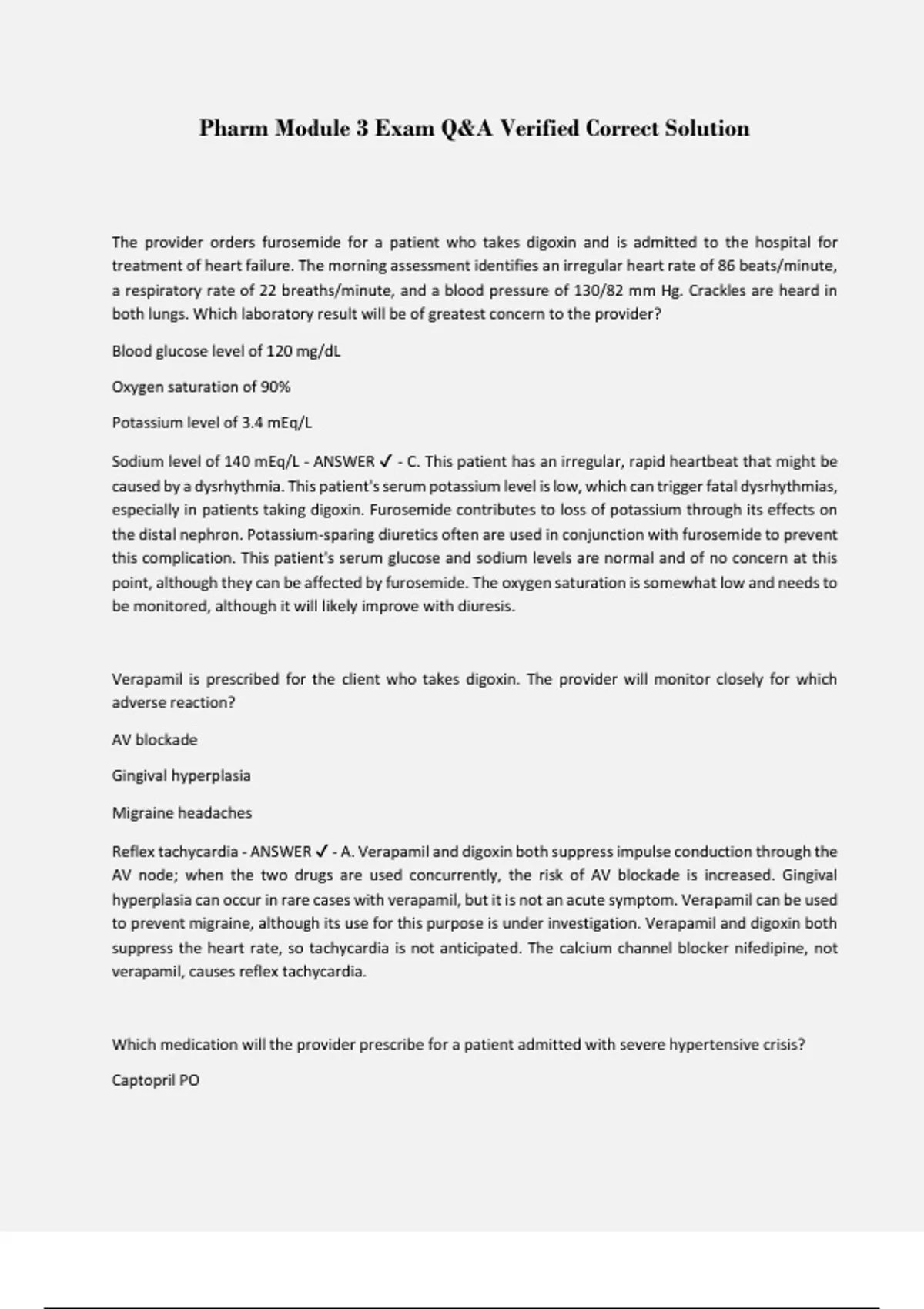 Pharm Module 3 Exam Q&A Verified Correct Solution