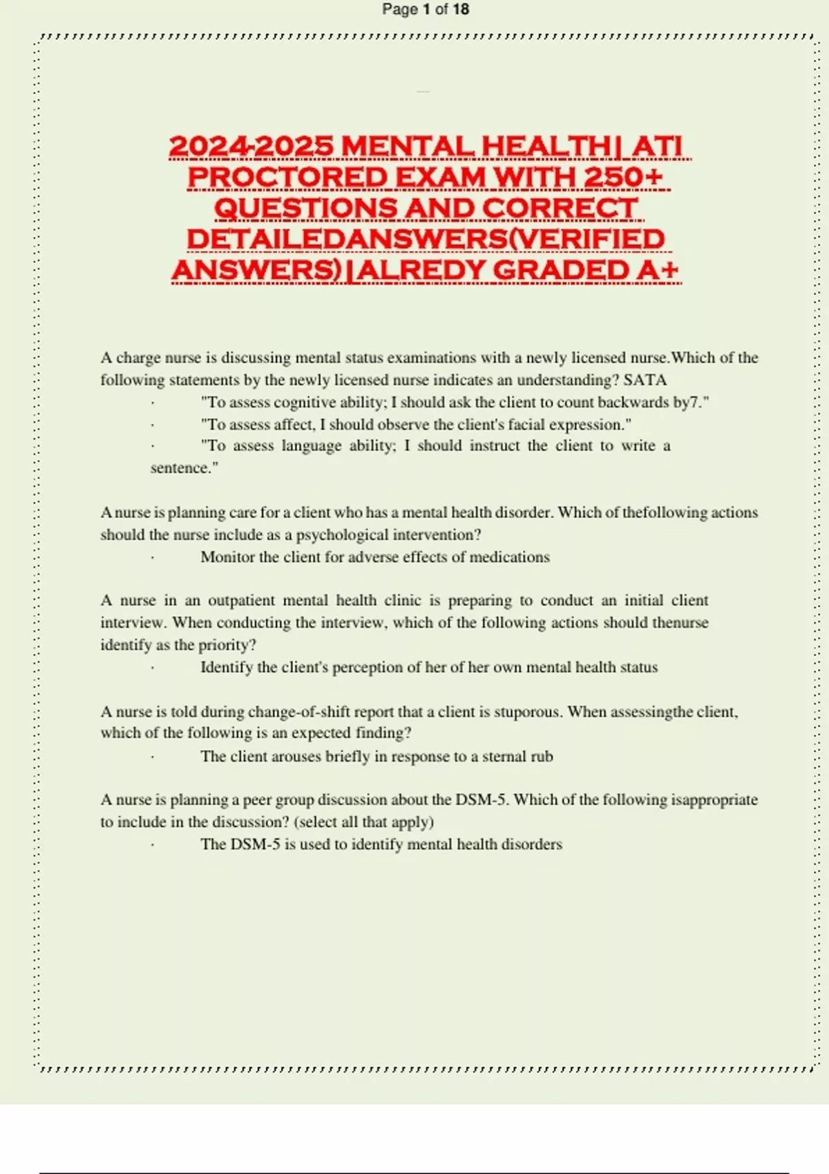 · "To assess cognitive ability; I should ask the client to count backwards by7."
