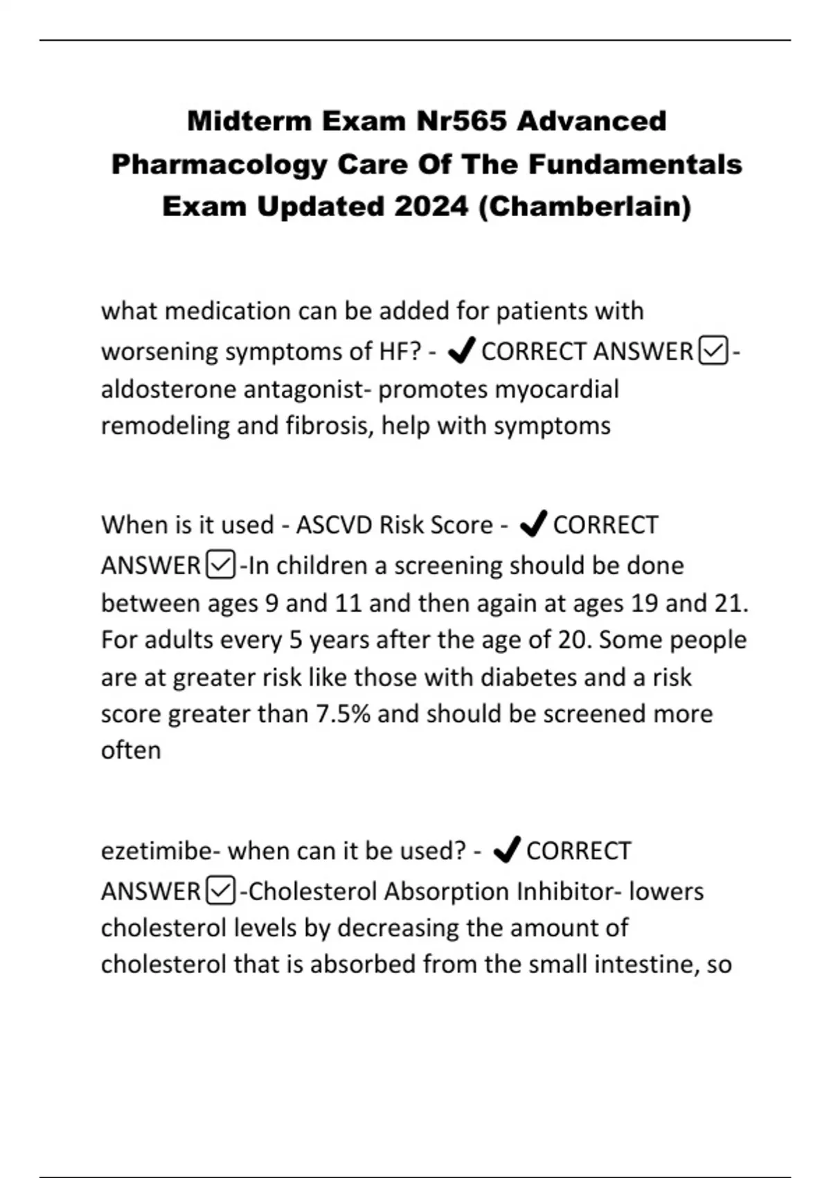 ANSWER✅-Cholesterol Absorption Inhibitor- lowers