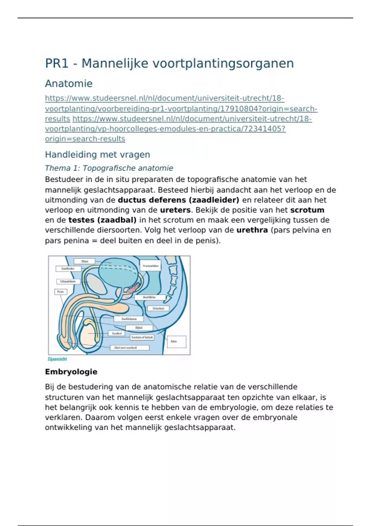 Voortplanting VP PR1 periode 1 jaar 3 mannelijk geslachtsapparaat: anatomie, microscopie, pathologie. volledig, aantekeningen en antwoorden.
