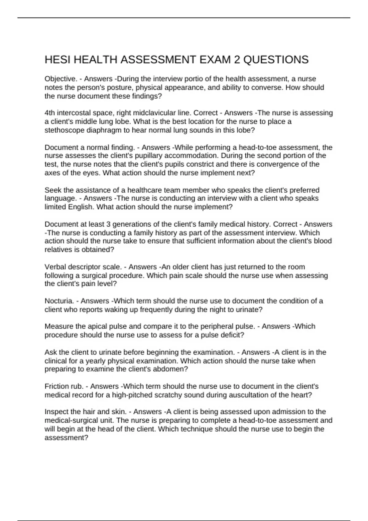 HESI HEALTH ASSESSMENT EXAM 2 QUESTIONS