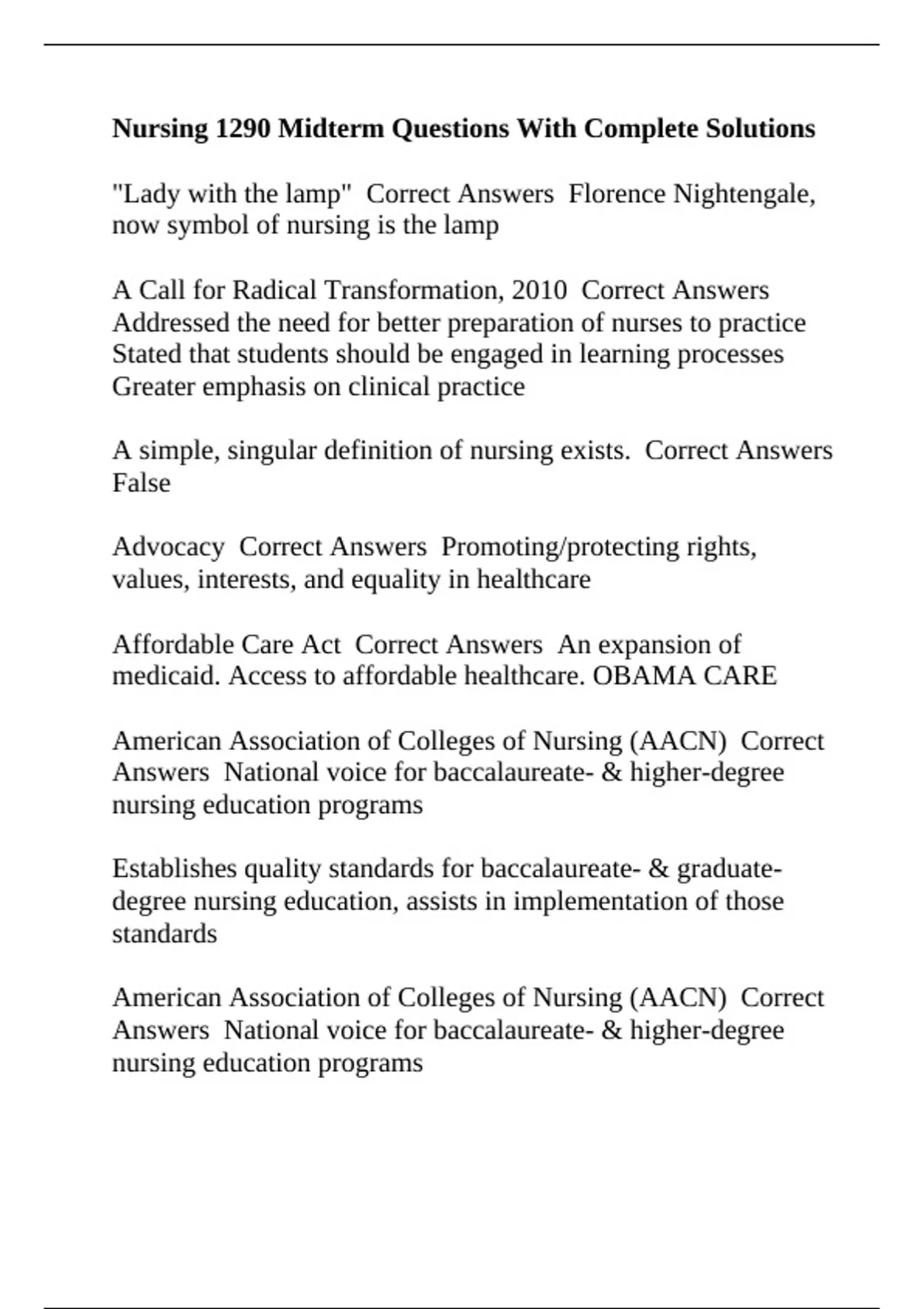 American Association of Colleges of Nursing (AACN) Correct