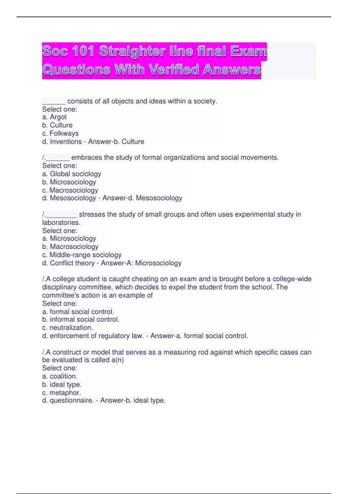 d. enforcement of regulatory law. - Answer-a. formal social control.