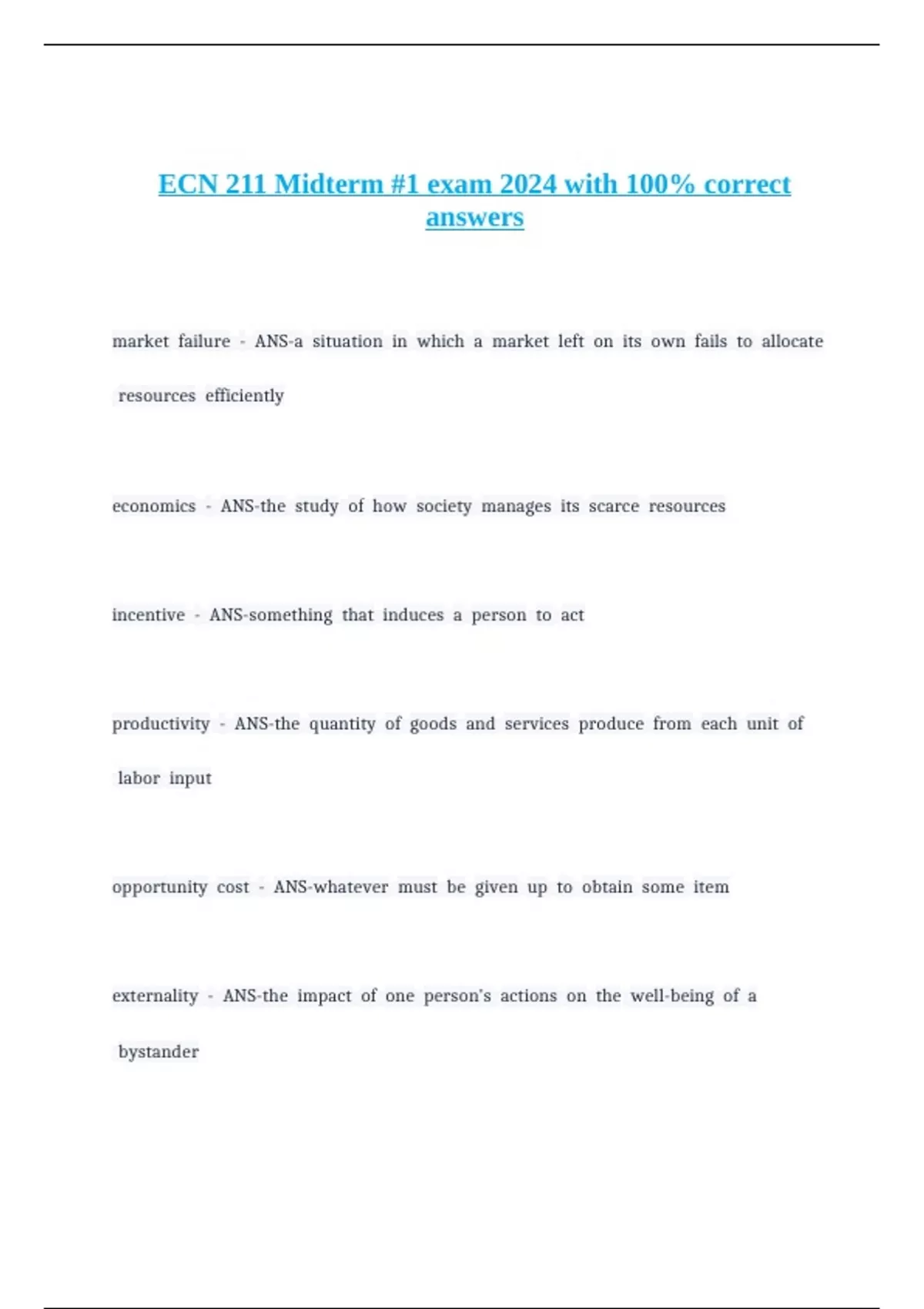 ECN 211 Midterm #1 exam 2024 with 100% correct