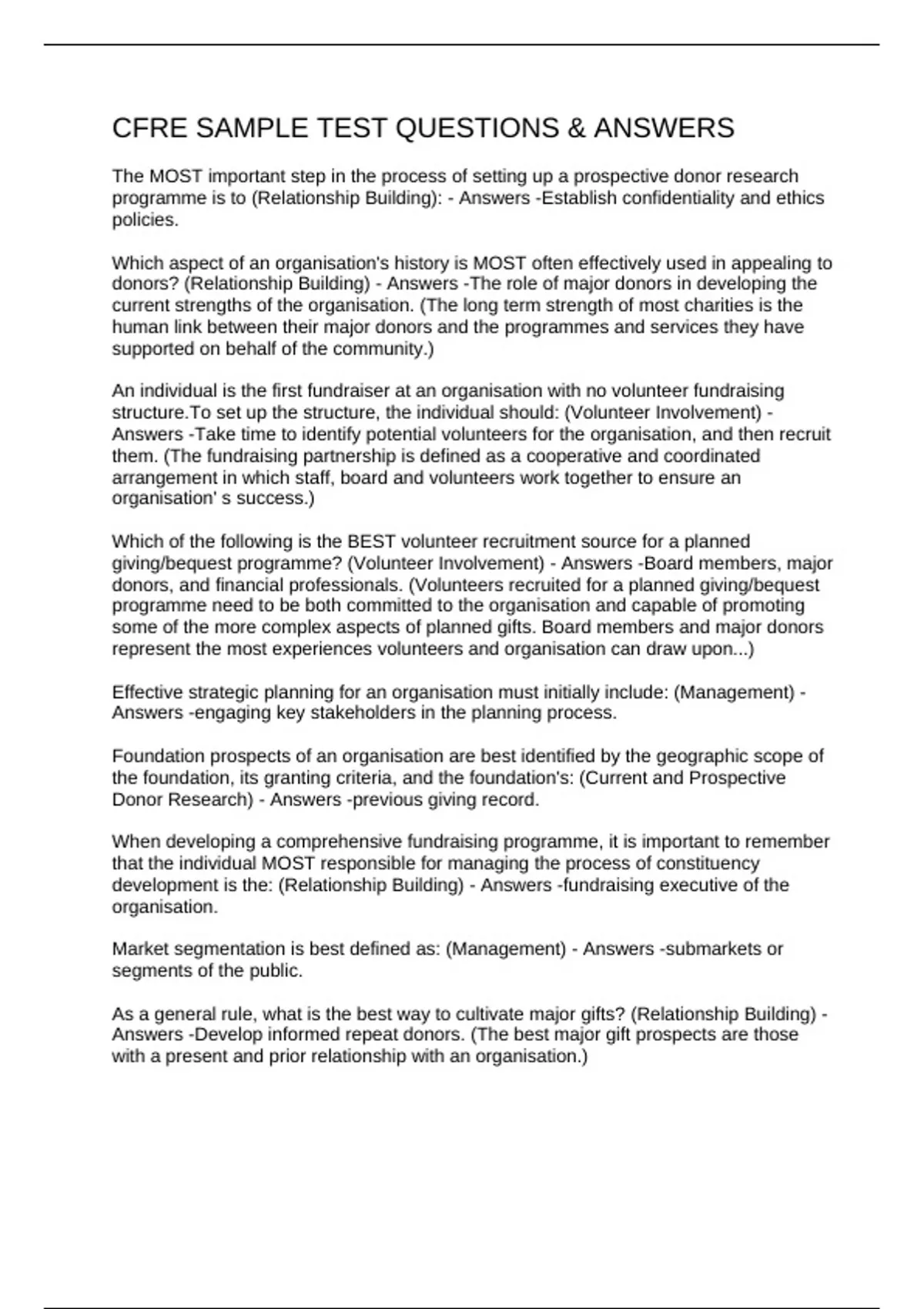CFRE SAMPLE TEST QUESTIONS & ANSWERS