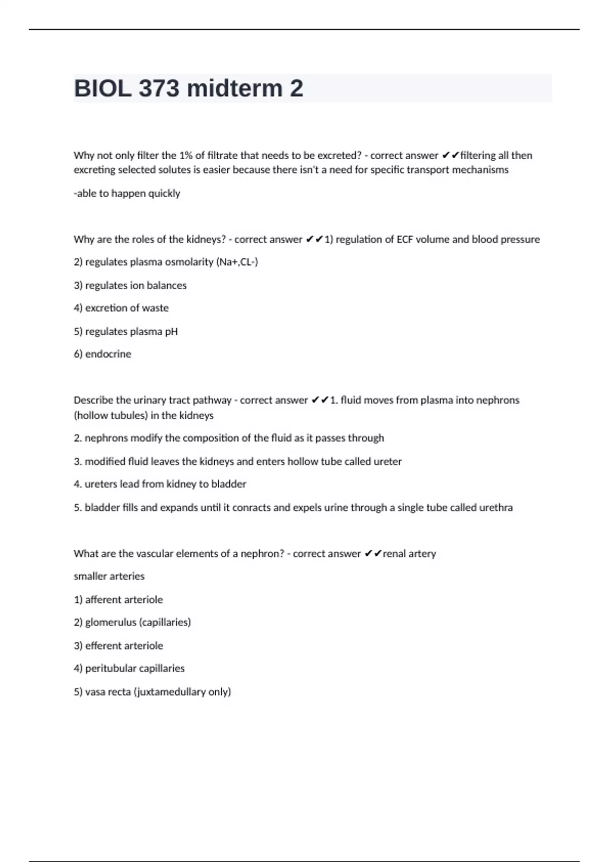 , Overview of kidney function - correct answer ✔✔-kidneys process over 180 L plasma/day but only 1.5 L
