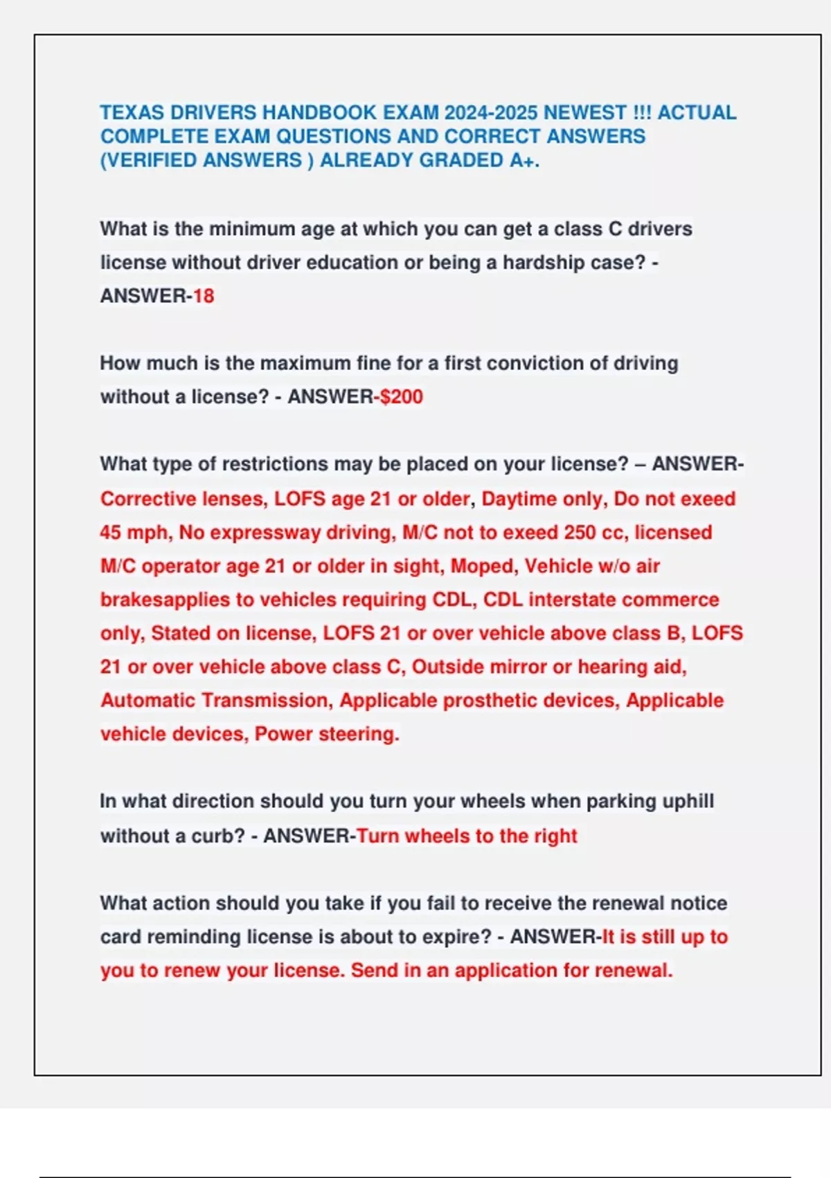 What type of restrictions may be placed on your license? – ANSWER-