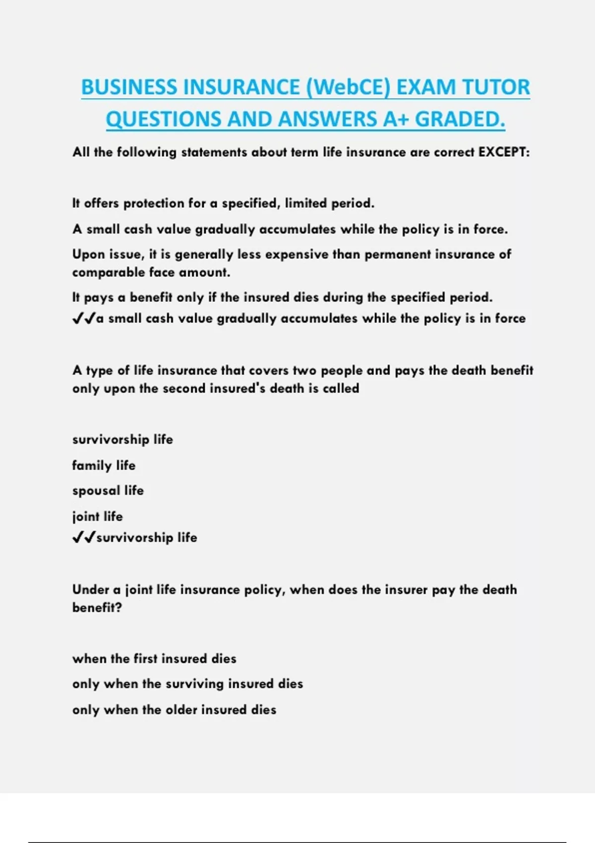 BUSINESS INSURANCE (WebCE) EXAM TUTOR QUESTIONS AND ANSWERS A+ GRADED.