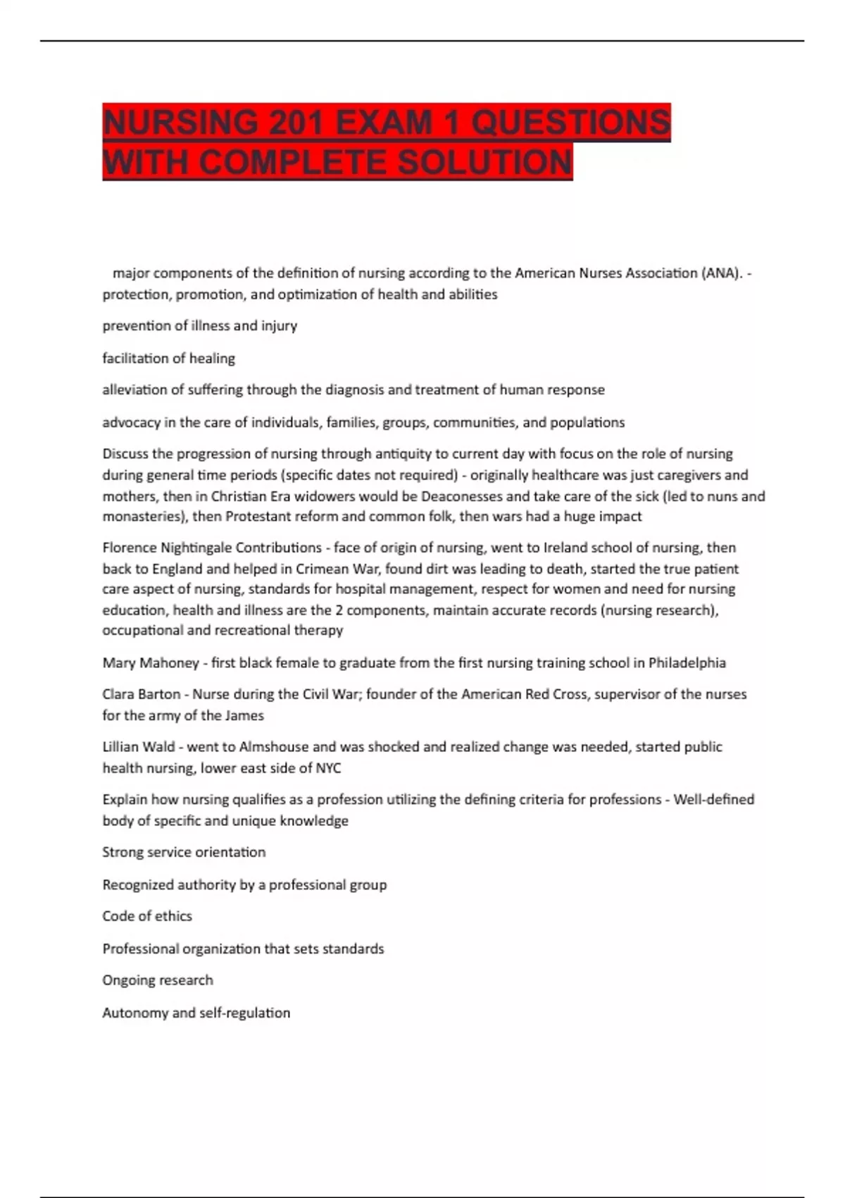 Exam of 10 pages for the course Nursing 201 at Nursing 201 (Nursing 201 Exam 1)
