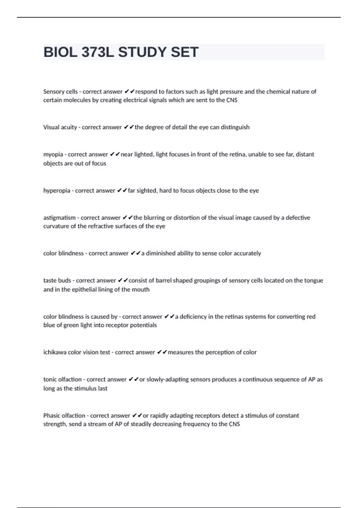 Sensory cells - correct answer ✔✔respond to factors such as light pressure and the chemical nature of