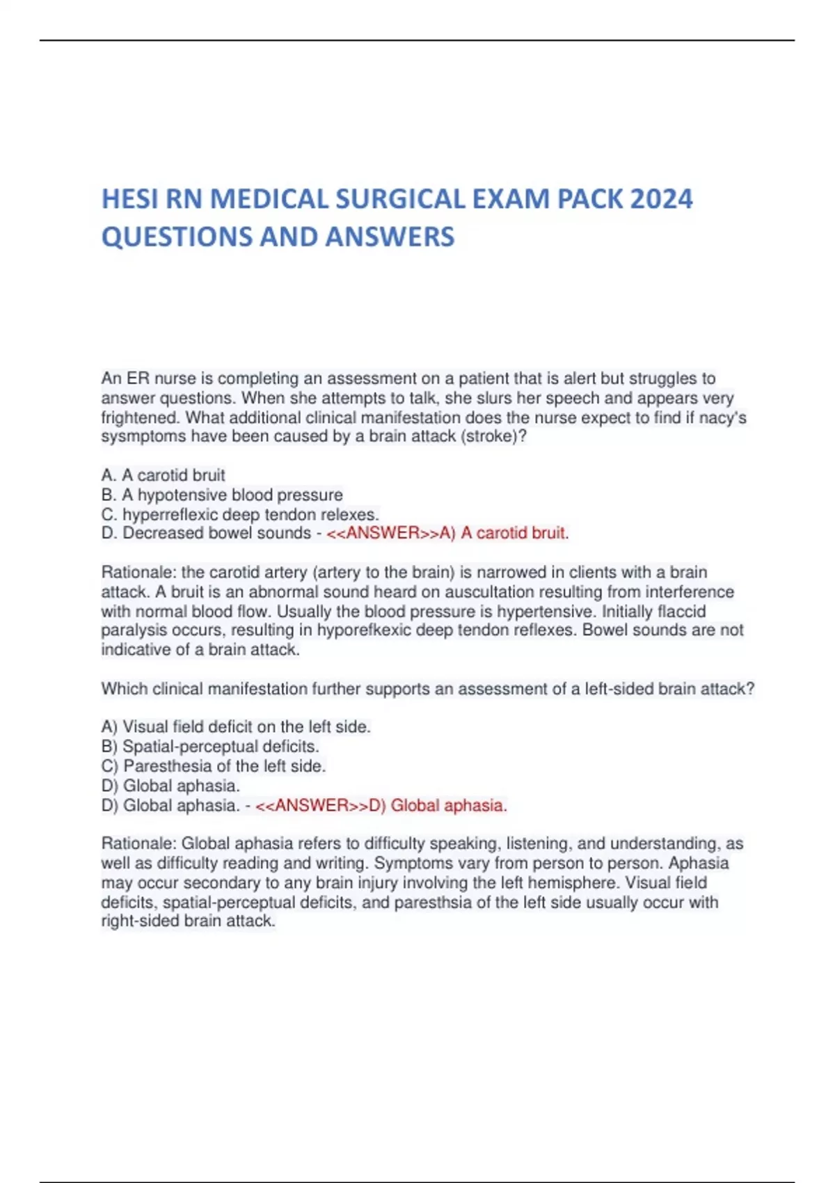 HESI RN MEDICAL SURGICAL EXAM PACK 2024 QUESTIONS AND ANSWERS