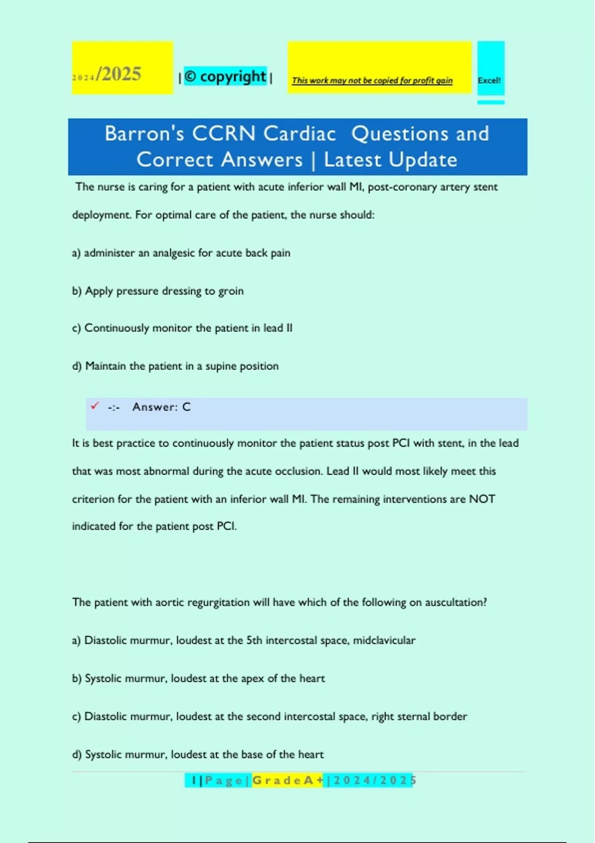 Barron's CCRN Cardiac Questions and