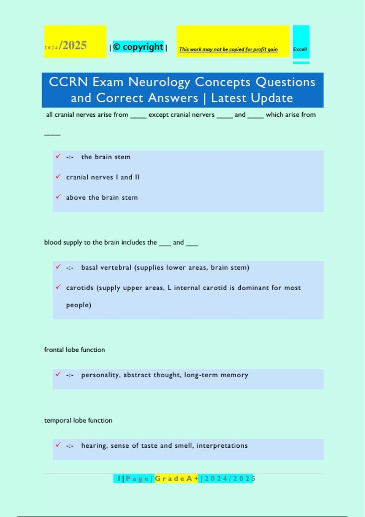 , 2024 /2025 | © copyright | This work may not be copied for profit gain Excel!
