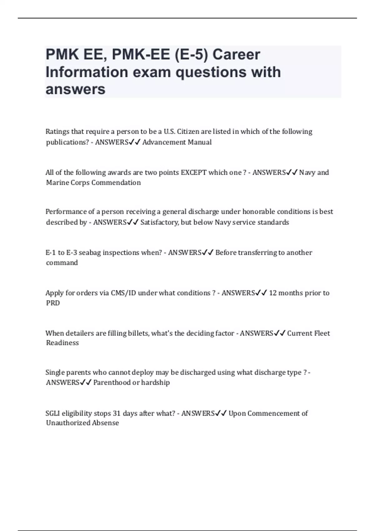 PMK EE, PMK-EE (E-5) Career Information exam questions with answers