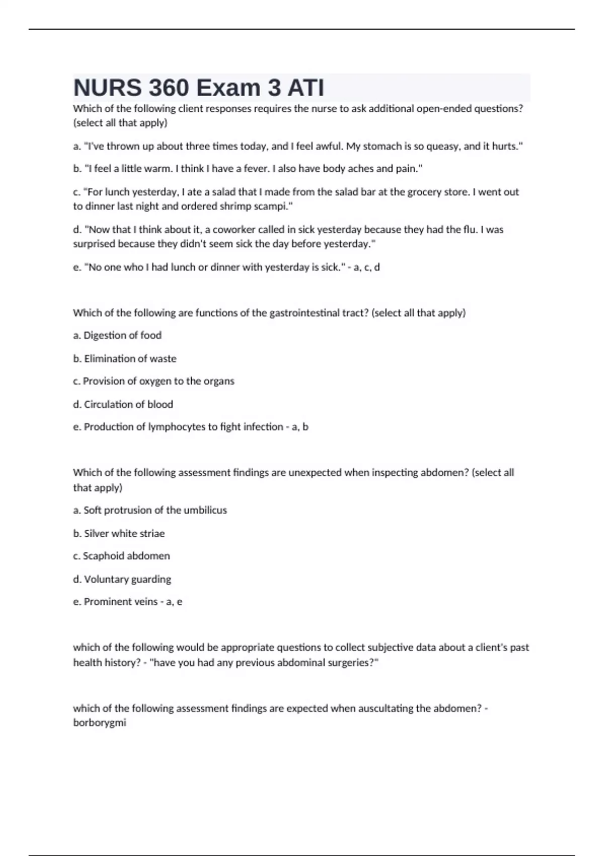 NURS 360 Exam 3 ATI