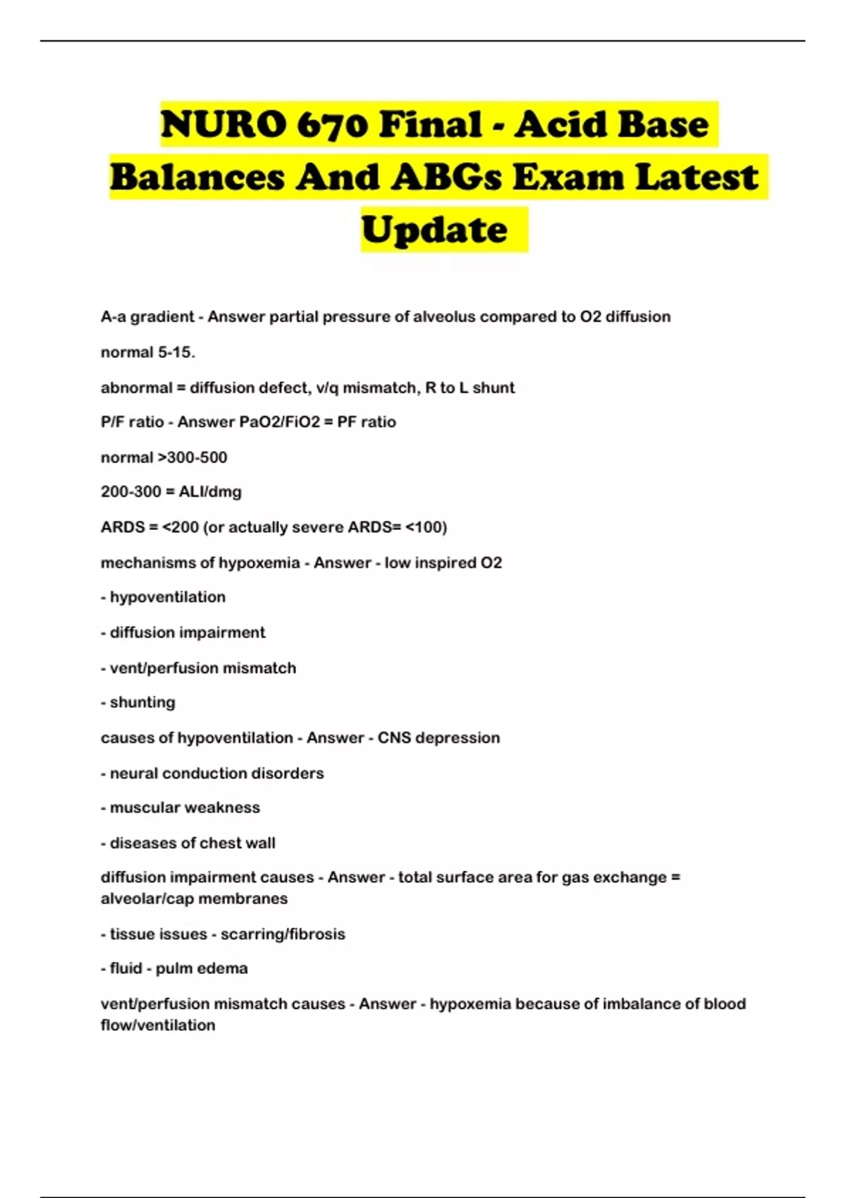 - ex: ARDS, atelectasis, PE, PNA, pulm edema, vascular lung tumors, intracardiac R to L