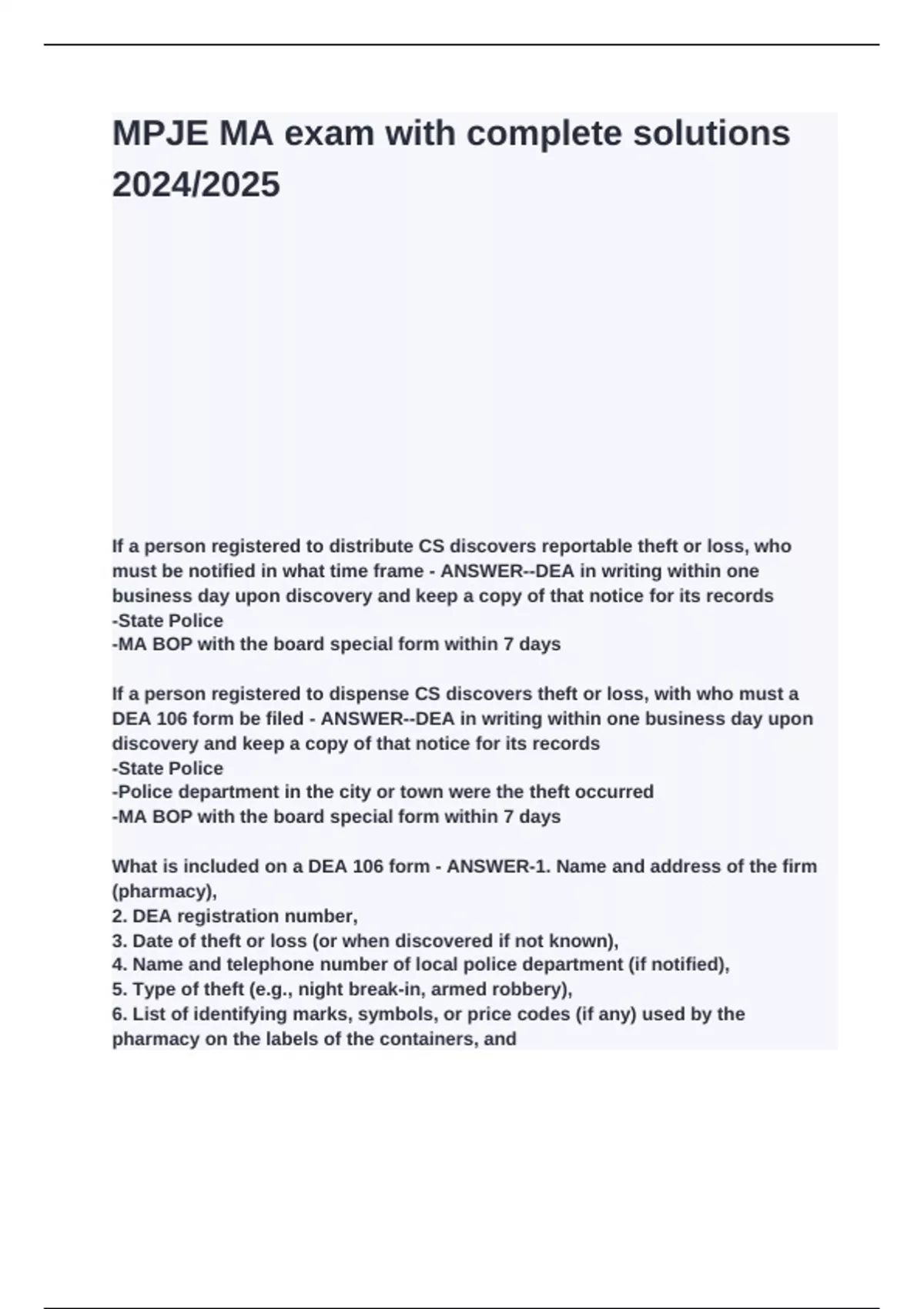 DEA 106 form be filed - ANSWER--DEA in writing within one business day upon